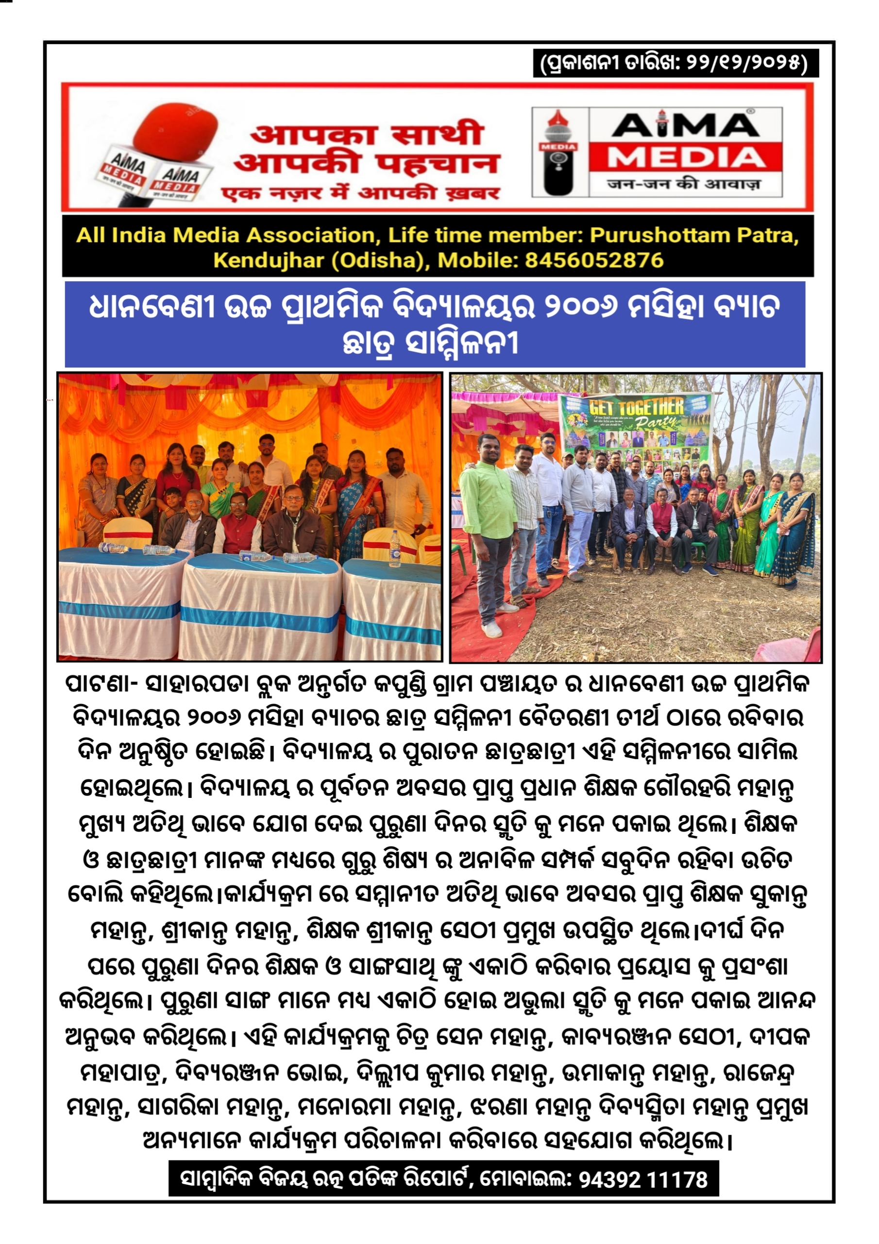 ଧାନବେଣୀ ଉଚ୍ଚ ପ୍ରାଥମିକ ବିଦ୍ୟାଳୟର ୨୦୦୬ ମସିହା ବ୍ୟାଚ ଛାତ୍ର ସାମ୍ମିଳନୀ।