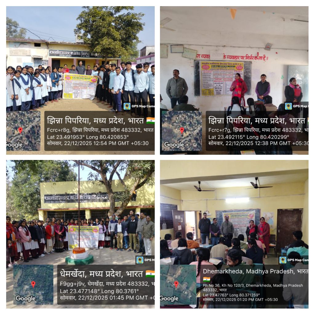 "शासकीय उच्चतर माध्यमिक विद्यालय ढीमरखेड़ा एवं जिन्नापिपरिया के छात्र-छात्राओं को शासन की विभिन्न योजनाओं एवं ई-प्रवेश की दी गई जानकारी "