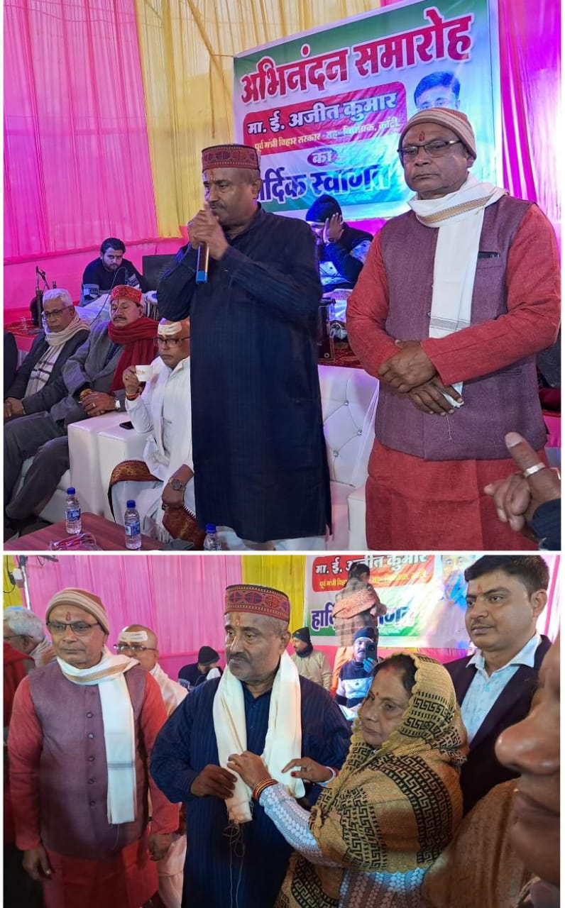वही, स्थानीय समाजसेवी साकेत रामायण पांडे व उनकी पत्नी मंजू देवी ने विधायक अजीत कुमार का भव्य तरीकों से स्वागत किया।