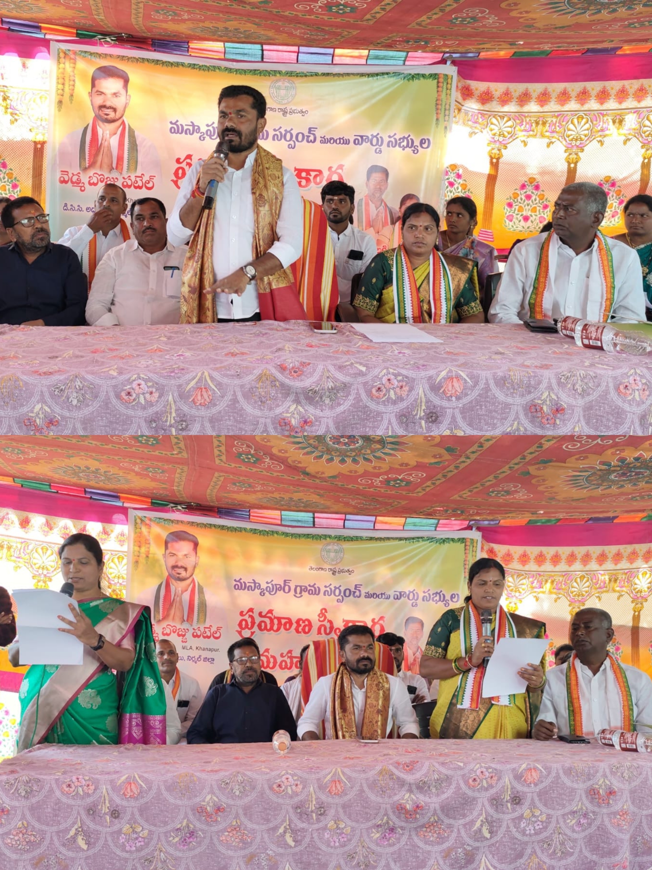 మస్కాపూర్ గ్రామ సర్పంచ్ దొనికేని లక్ష్మి దయానంద్ ప్రమాణస్వీకారం లో పాల్గొన్న ఎమ్మెల్యే వెడ్మ బొజ్జు పటేల్ .