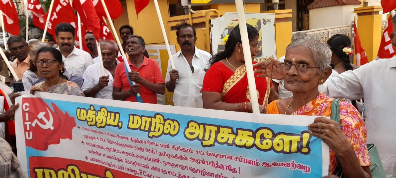 இன்றைய தினம், தென்காசி தபால் நிலையம் அருகில் சிஐடியு சார்பில் ,ஒன்றிய அரசின் தொழிலாளர் விரோத சட்ட தொகுப்புகளை கண்டித்து CITU மாவட்ட தலைவர் T. வன்னியபெருமாள் தலைமையில் மறியல் போராட்டம் நடைபெற்றது. இந்த மறியல் போராட்டத்தில் இந்திய தொழிற்சங்க மையம் CITU தென்காசி மாவட்டம் குழுவினர் மற்றும் பொதுமக்கள் பலர் கலந்து கொண்ட நிலையில் 15 பெண்கள் உட்பட தோழர்கள் 67 பேரை காவல்துறையினர் கைது செய்தனர்.என்றும் மக்கள் நல பணியில் தென்காசி மாவட்ட தோழர் தாமோதரன்.