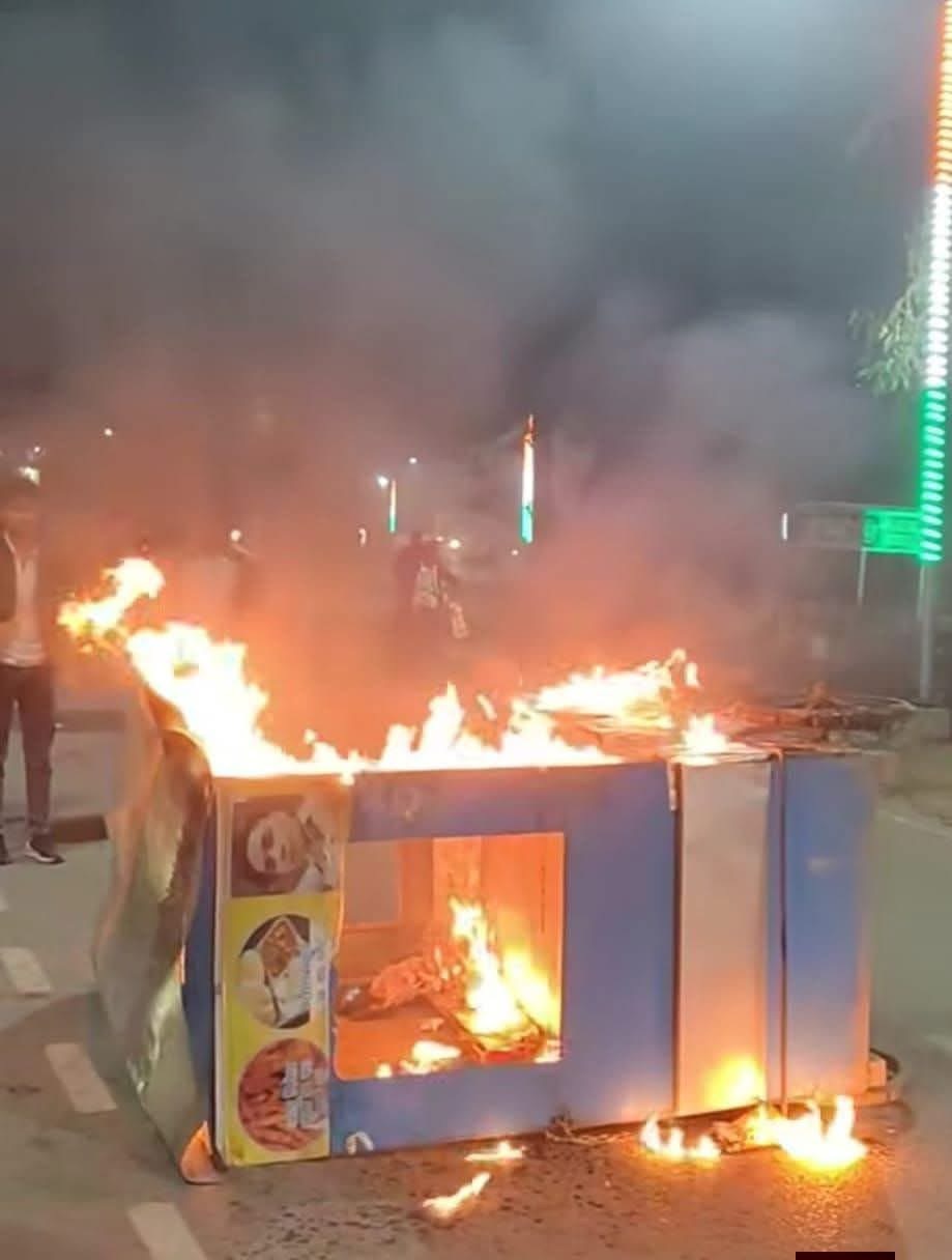 प्रत्यक्षदर्शियों के अनुसार, कुछ लोगों ने यह आरोप लगाते हुए हंगामा शुरू किया कि मोमो विक्रेता कई महीनों से प्रतिबंधित मांस का उपयोग कर रहा है। यह खबर देखते ही देखते पूरे इलाके में फैल गई, जिसके बाद उग्र भीड़ ने दुकान पर धावा बोल दिया और आगजनी की घटना को अंजाम दिया।