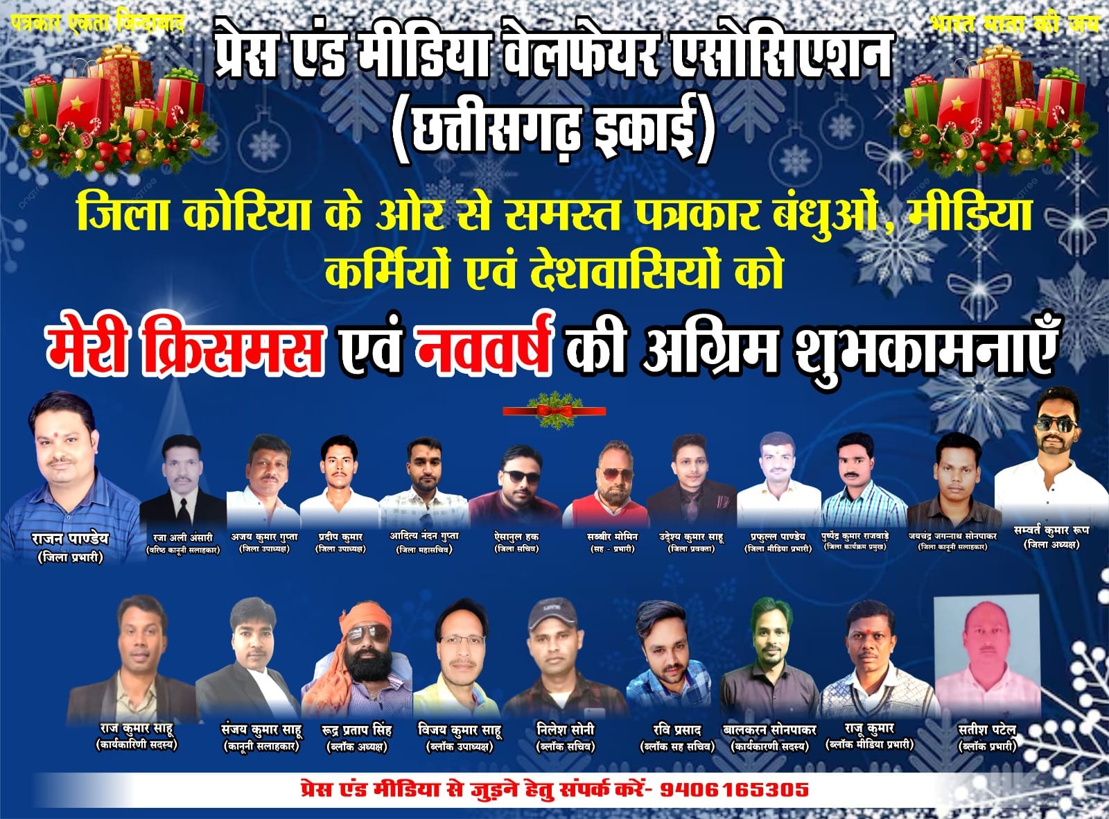 कोरिया। प्रेस एंड मीडिया वेलफेयर एसोसिएशन नई दिल्ली (छत्तीसगढ़ इकाई) की कोरिया जिला स्तरीय बैठक कटगोड़ी रेस्ट हाउस, आनंदपुर नर्सरी में अत्यंत ऊर्जा और संकल्प के साथ आदित्य गुप्ता के अध्यक्षता व मार्गदर्शन में हुई थी जिसमे संगठनात्मक मजबूती और पत्रकार हितों को लेकर कई महत्वपूर्ण निर्णय लिए गए थे बैठक में लिए गए निर्णय के परिपालन में दूसरी बैठक कर पत्रकारों और समाजसेवियों की एकजुट आवाज़ के साथ कोरिया जिले के कार्यकारिणी का गठन किया गया।