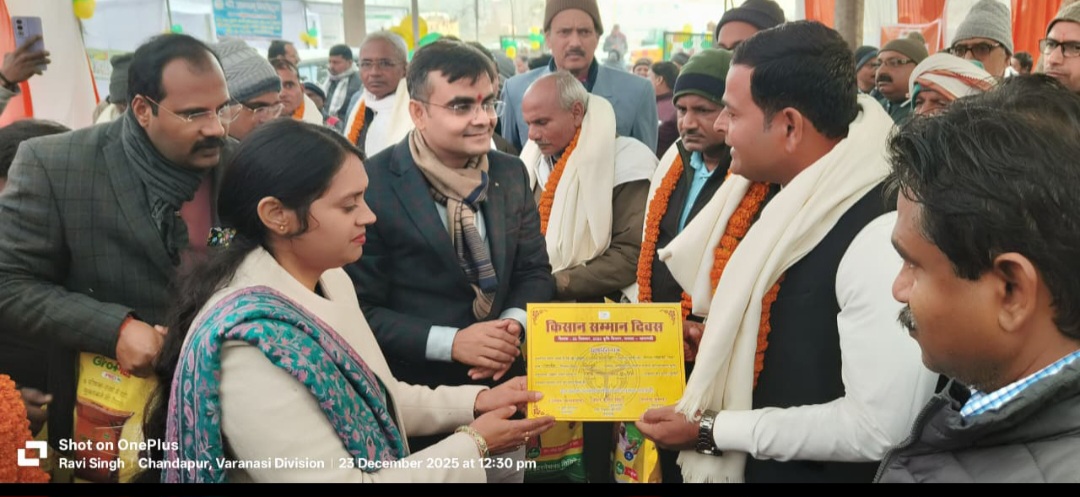 राष्ट्रीय किसान दिवस के उपलक्ष्य में किसानों के प्रेरणास्रोत पूर्व प्रधानमंत्री भारत रत्न चौधरी चरण सिंह जी की 123वीं जयंती कृषि भवन, वाराणसी में मनाया गया । जनपद में उत्कृष्ट कार्य करने वाले किसानों को सम्मानित किया गया। जनपद में मत्स्य पालन के क्षेत्र में सराहनीय कार्य के लिए सेवापुरी -वाराणसी के बनकट गांव के प्रगतिशील मत्स्य पालक श्री रविन्द्र प्रताप सिंह को आर.ए.एस.व तालाब के संयोजन से एक सीजन में तीन क्राप उत्पादित कर एक रिकॉर्ड उत्पादन किया जिसके लिए उनको जनपद का प्रथम पुरस्कार दिया गया। श्री सत्येन्द्र कुमार (IAS), जिलाधिकारी वाराणसी ने अंगवस्त्र, माल्यार्पण व प्रशस्ति पत्र देकर सम्मानित किया ।