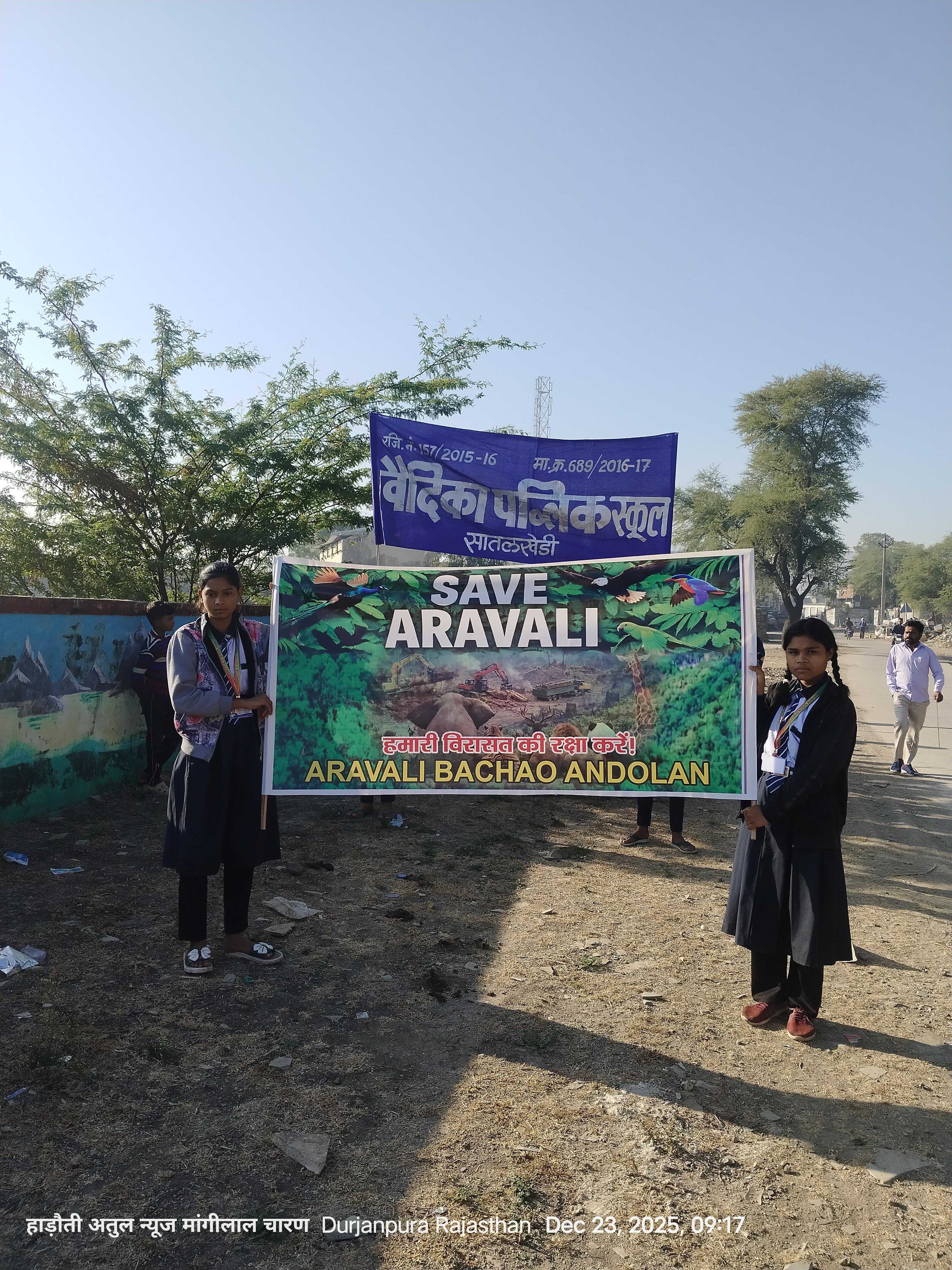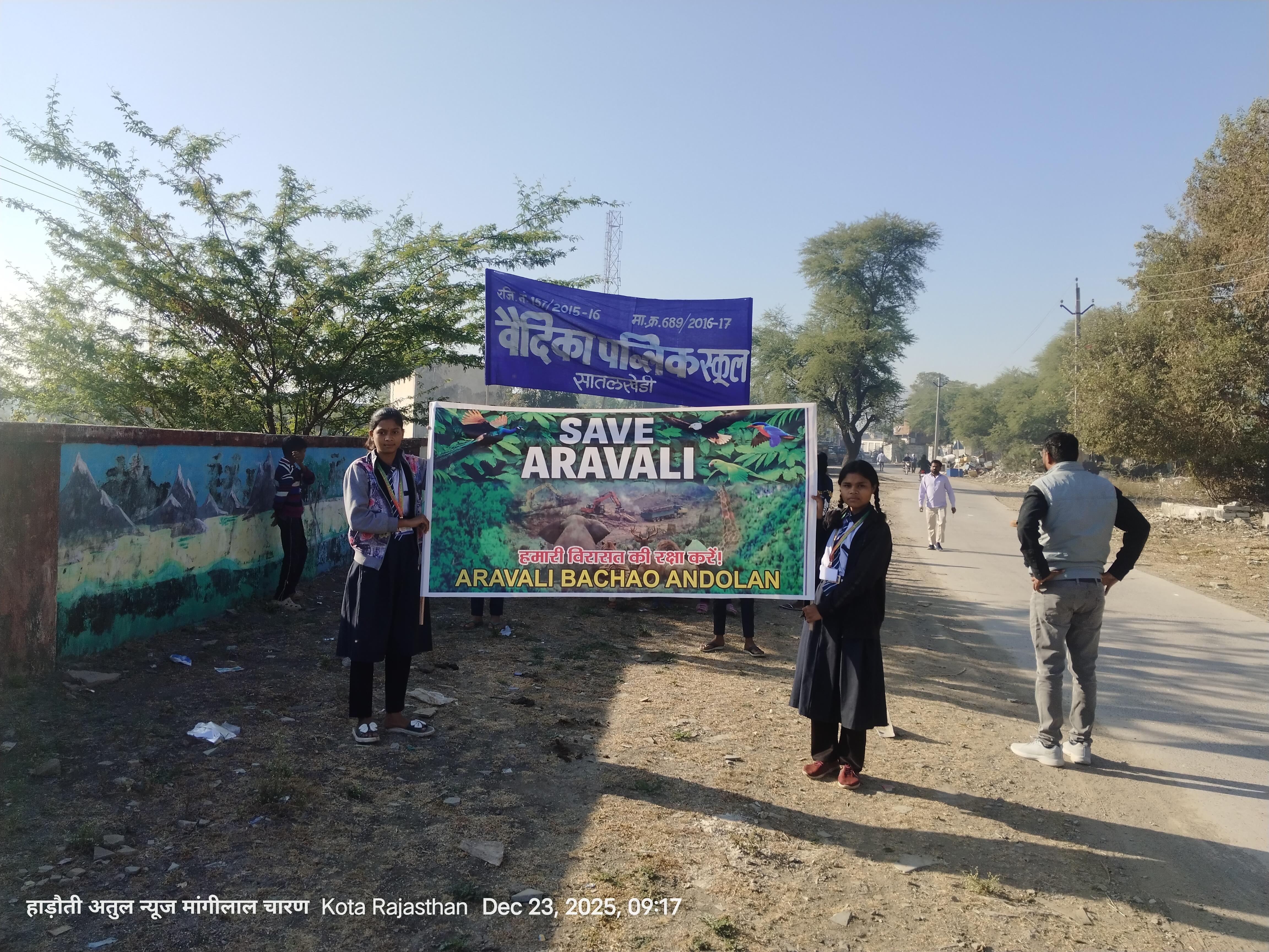 सेव अरावली अभियान के अंतर्गत वेदिका पब्लिक स्कूल द्वारा एक जागरूकता रैली निकाली गई। रैली के दौरान विद्यालय की प्रधानाध्यापिका ने विद्यार्थियों के माध्यम से आमजन तक पर्यावरण संरक्षण का संदेश पहुंचाया। उन्होंने कहा कि मानव जीवन के लिए पेड़-पौधे अत्यंत आवश्यक हैं और इनके संरक्षण के बिना भविष्य सुरक्षित नहीं रह सकता।
