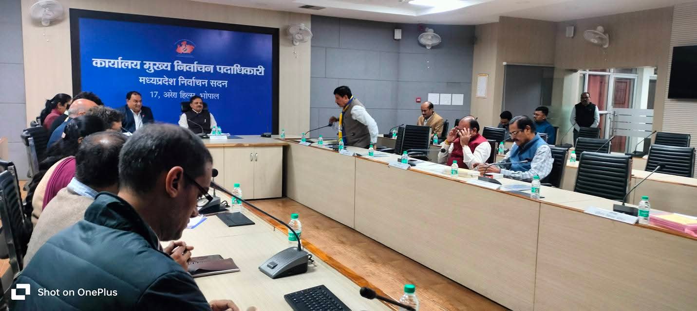 मुख्य निर्वाचन पदाधिकारी मध्यप्रदेश ने निर्वाचन सदन, भोपाल में मान्यता प्राप्त राजनैतिक दलों के प्रतिनिधियों के साथ बैठककर प्रारूप मतदाता सूची के प्रकाशन की जानकारी दी।
