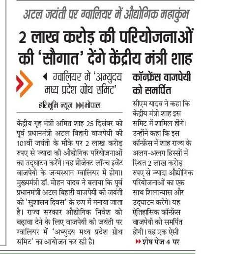 ग्वालियर में 25 दिसंबर को आयोजित होगी अभ्युदय मध्यप्रदेश ग्रोथ समिट