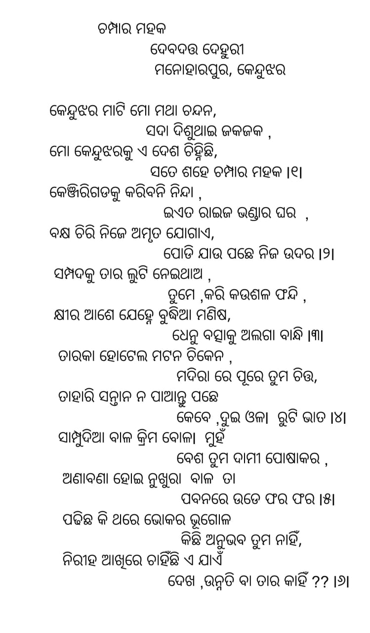 ଚମ୍ପାର ମହକ! ଦେବଦତ୍ତ ଦେହୁରୀ ଙ୍କ ଦ୍ଵାରା ରଚିତ କବିତା।