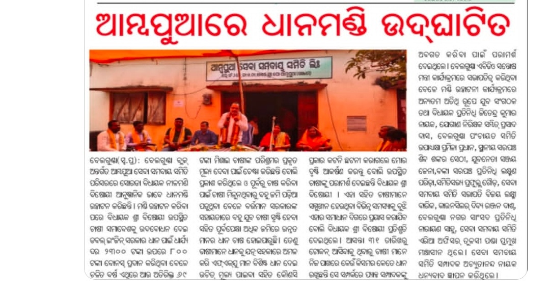 ଵେଲଗୁଣ୍ଠା ବ୍ଳକ୍ ଅନ୍ତର୍ଗତ ଆମ୍ଵପୁଆ ସେବା ସମବାୟ ସମିତି ପରିସରରେ ସରଡା ବିଧାୟକ ନୀଳମଣି ବିଷୋୟୀ