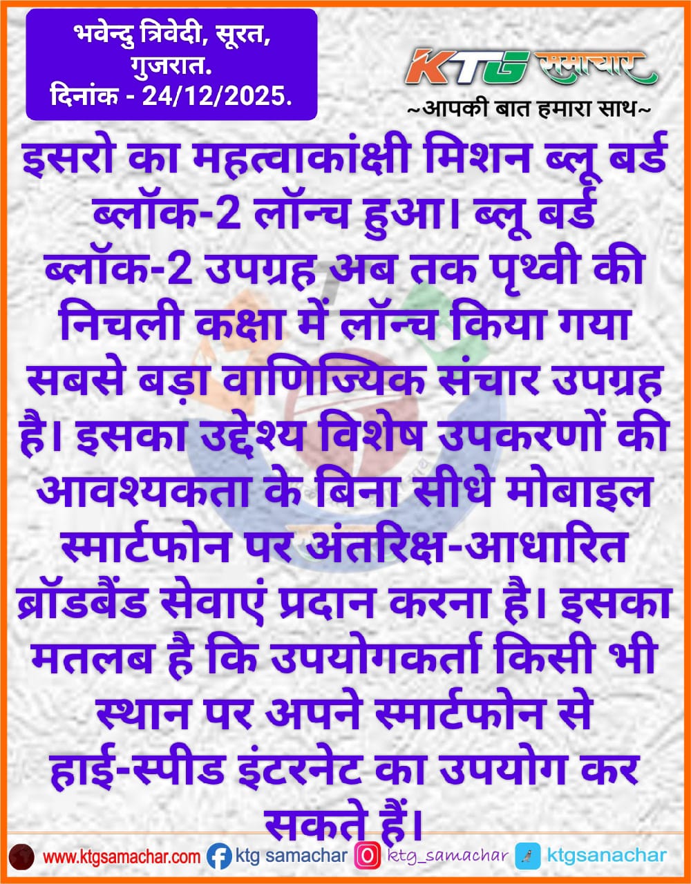 इसरो का महत्वाकांक्षी मिशन ब्लू बर्ड ब्लॉक 2 लॉन्च हुआ।