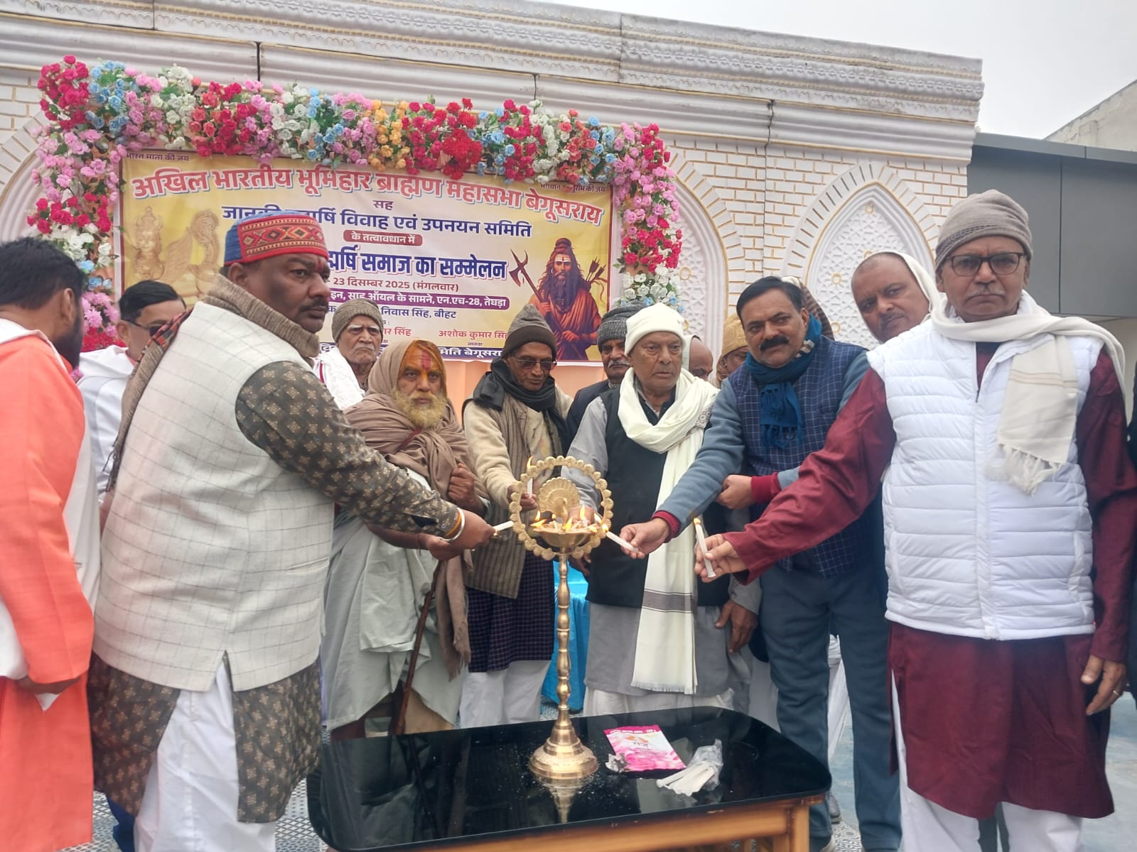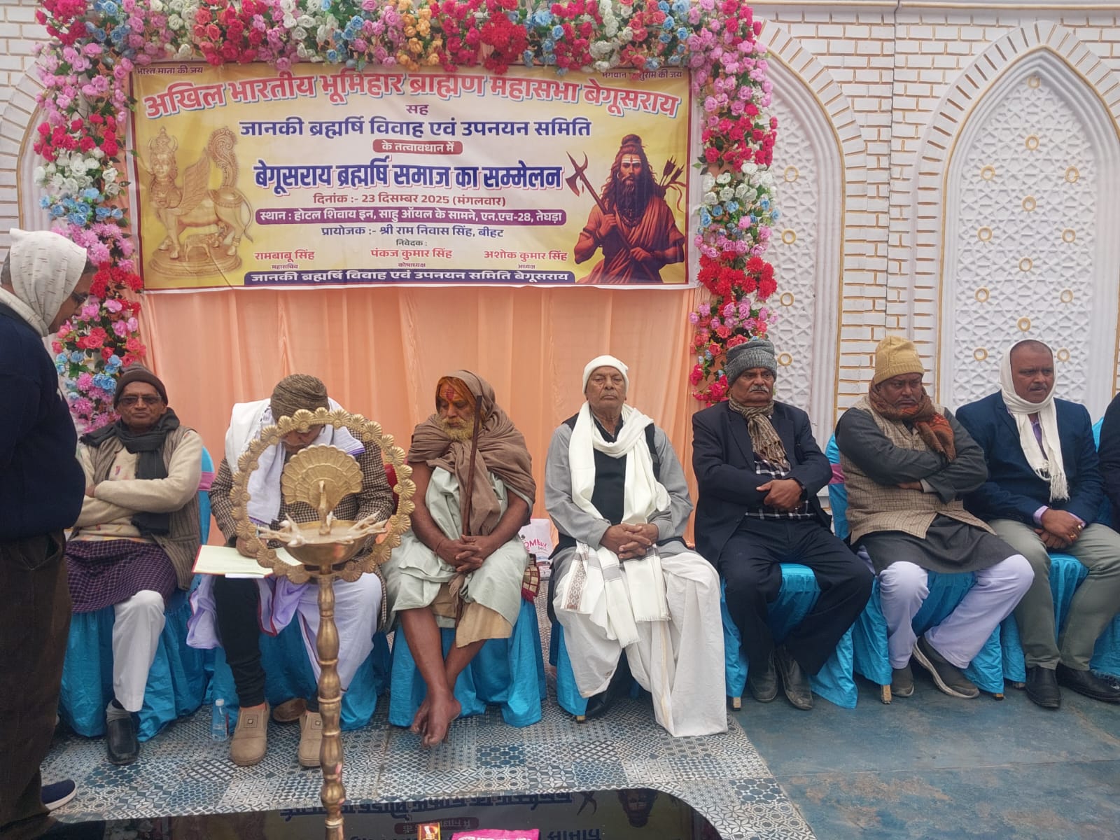 अखिल भारतीय भूमिहार ब्राह्मण महासभा बेगूसराय जानकी ब्रह्मर्षि विवाह एवं उपनयन समिति का आज महासम्मेलन तेघरा के होटल शिवाय के प्रांगण में आयोजनकर्ता रामनिवास सिंह के सौजन्य से संपन्न हुआ। इस अवसर पर कार्यक्रम की अध्यक्षता कर रहे राजेंद्र सिंह, संचालनकर्ता रामबाबू सिंह, अशोक सिंह ने कहा कि विवाह-उपनयन कार्यक्रम को लेकर सभी गोत्र के भूमिहार ब्राह्मण महासभा का आयोजन किया गया। इसमें कार्यक्रम के निमित्त कई महत्वपूर्ण बिंदुओं पर विस्तृत चर्चा किया गया एवं संगठनात्मक रूपरेखा को मजबूत बनाने के लिए विचार-विमर्श सरलतापूर्वक किया गया। इसी अवसर पर पूर्व डीएसपी सुनील सिंह, रामकुमार कुँवर, रामनिवास सिंह, जयप्रकाश चौधरी, रौशन कुमार ने निशुल्क विवाह उपनयन समिति को सैकड़ों बालक-बालिकाओं का उपनयन-विवाह निशुल्क करने का निर्णय महासभा में सभी के सहयोग के माध्यम से लिया। कुमार अनिल, अशोक सिंह, विजय सिंह, कार्तिक सिंह, रामकिंकर सिंह, रामाश्रय सिंह, राजकिशोर शर्मा, रामनारायण सिंह, अवधेश झा, पंकज सिंह, कैलाशपति झा व गोपालदास के द्वारा दीप प्रज्वलित कर महत्वपूर्ण बिंदुओं पर बात करते हुए ध्यान आकर्षित कराया गया। समाज की चिंता कर महत्वपूर्ण बिंदुओं पर विचार करते हुए आगे बढ़े जिससे समाज का भला हो सके। धर्मेंद्र प्र सिंह, डॉ जितेंद्र प्र सिंह, अमित कुमार सिंह गप्पू सच्चिदानंद पाठक, कन्हैया कुमार, धीरज भारती, ऋषुराज सिंह, वीरेंद्र सिंह, विद्यानंद सिंह, चंद्रचूड़ शर्मा ने कहा कि आज समाज में गरीब तबके के आम जनमानस की चिंता करना एवं उनके समस्याओं का समाधान करना सभी का दायित्व है। इस निमित्त हम लोग एकजुट होकर अपने-अपने क्षेत्र की प्रमुख समस्याओं को अवगत कराते हुए भूमिहार ब्राह्मण महासभा में निदान करने हेतु योजना बनाते हुए सफल आयोजन किया गया। यह सराहनीय पहल है। उमेश प्र सिंह, अर्जुन सिंह, रामसखा सिंह, अनिल सिंह, राजेश सिंह ने कहा कि भूमिहार ब्राह्मण महासभा के सभी सदस्यों ने ऊर्जा जगाने का विभिन्न कार्यक्रमों के माध्यम से जो कार्य किया जा रहा है यह समाज के लोगों के लिए लाभदायक होगा। इसके लिए सभी को एकजुट होकर समाज में अच्छे कार्य करने के लिए इस तरह के महासभा करने की आवश्यकता है। मौके पर अंगद भारद्वाज, डॉ के के राय, रामनिवास सिंह, अनिल सिंह, रामचंद्र सिंह, रामनारायण सिंह, संजय चौधरी, डॉ चंद्रभूषण सिंह, महेश भारती, अभय सिंह, प्रिंस सिंह, दयानंद चौधरी, अजय चुलबुल, प्रियांशु कुमार, राजेश रंजन, अशोक सिंह, रामबाबू सिंह, निर्मल मिश्रा, अमित कुमार सिंह गप्पू, रामाश्रय सिंह, पंकज मुखिया, रमेश सिंह, राजकिशोर सिंह आदि सभी सैकड़ों सदस्य उपस्थित थे।
