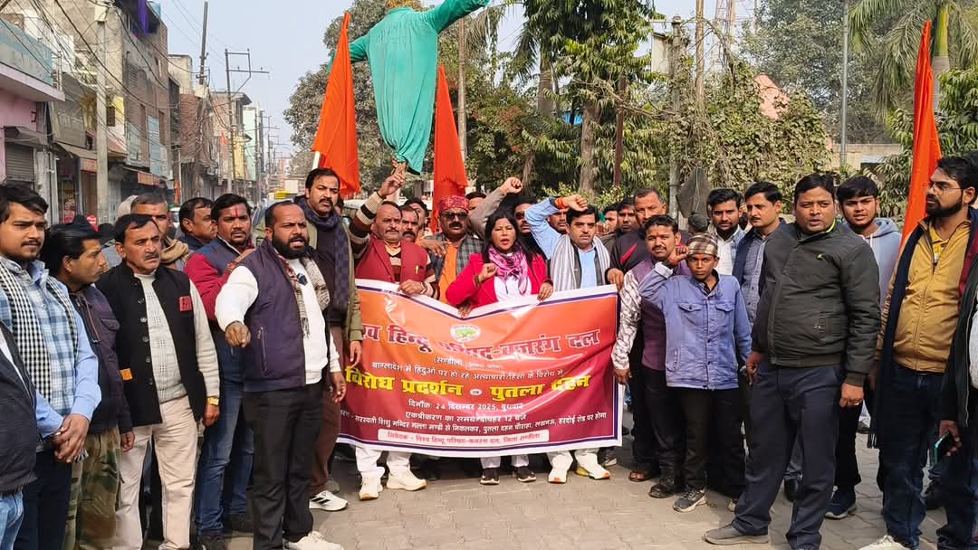 आज, 24 दिसंबर 2025 को, संडीला में विश्व हिंदू परिषद और बजरंग दल के तत्वावधान में बांग्लादेश में हाल ही में हुई घटनाओं के विरोध में एक विशाल प्रदर्शन किया गया।जिसमे समस्त हिंदू समाज सम्मिलित हुआ।प्रदर्शनकारियों ने बांग्लादेश सरकार के खिलाफ नारेबाज़ी की और दोषियों को कड़ी सजा देने की मांग की।