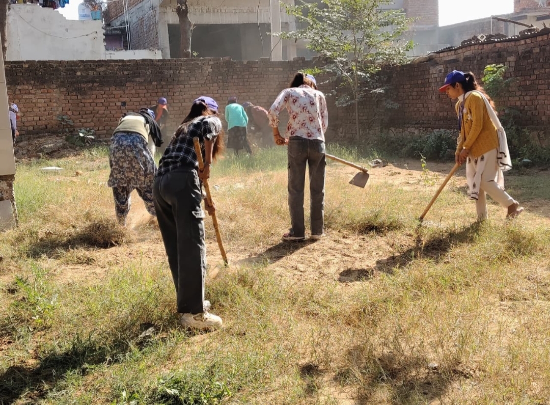 राष्ट्रीय सेवा योजना के तीसरे दिन गांव दांगनहेड़ी के मंदिर परिसर में श्रमदान कर स्वच्छता का संदेश दिया