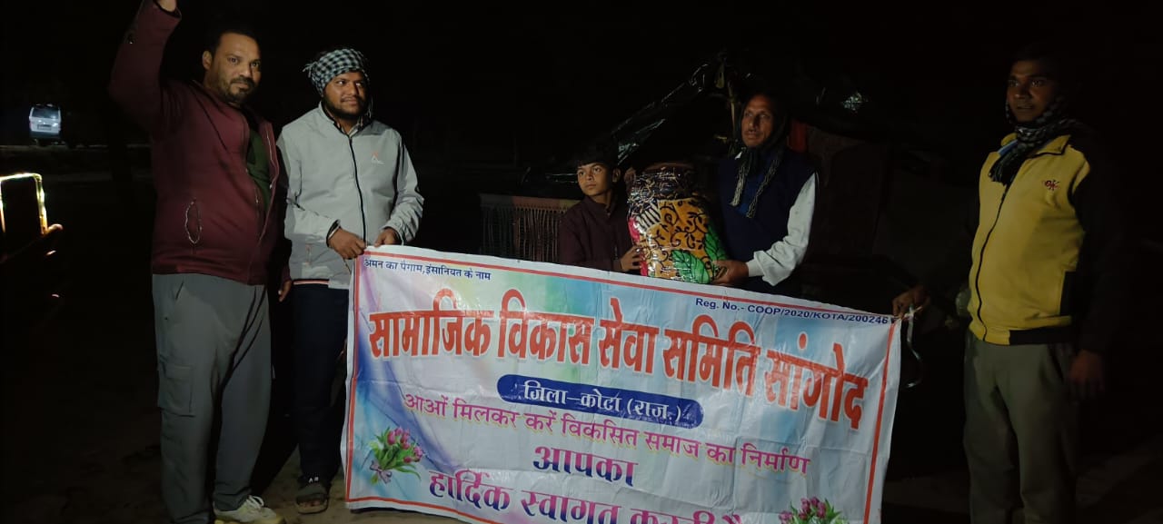 सांगोद-सामाजिक विकास सेवा समिति सांगोद द्वारा पांच दिवसीय कंबल वितरण प्रोग्राम चलाया जा रहा है, जिसका उद्देश्य ठंड से बचने के लिए गरीब, बेसहारा और अनाथ लोगों को कंबल वितरित करना है।