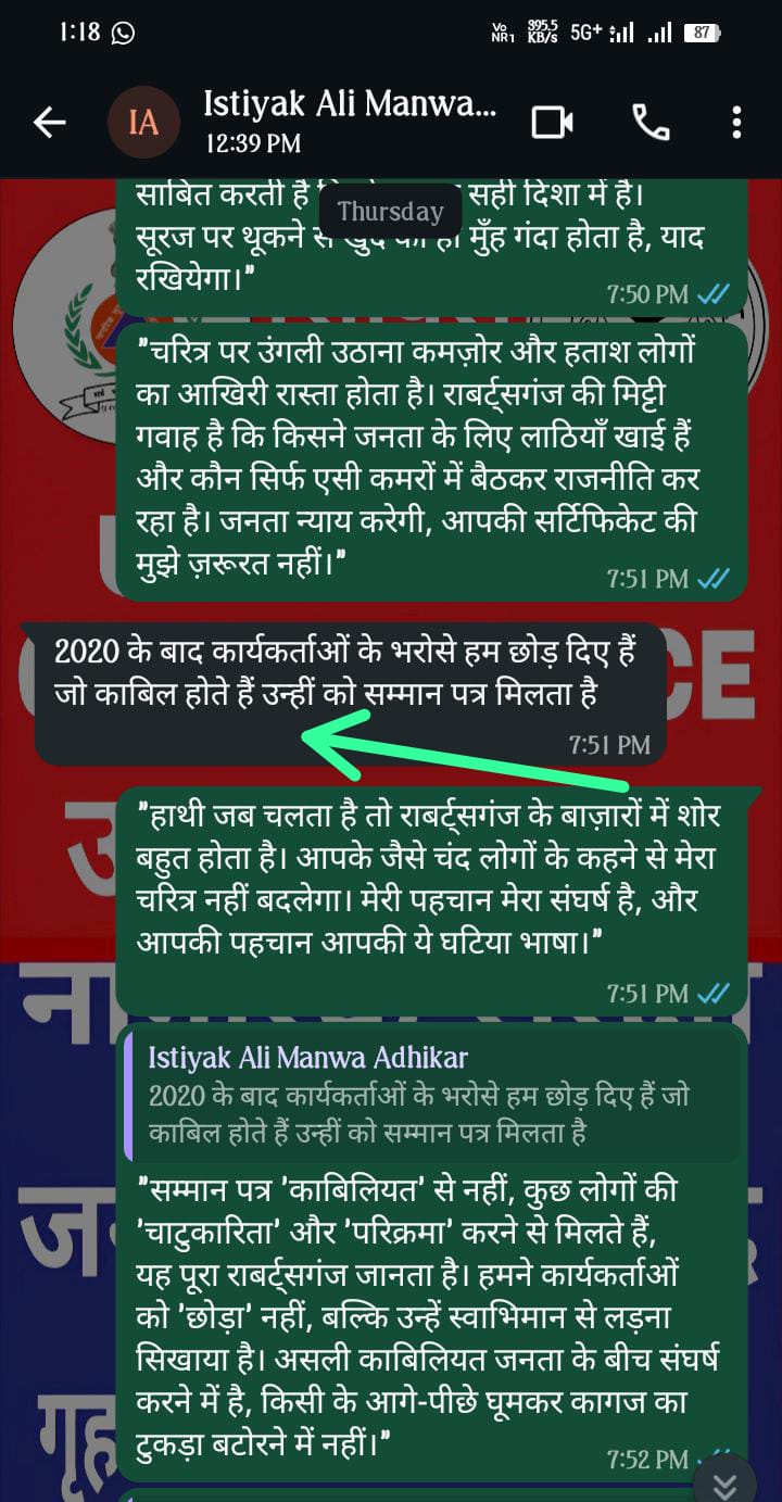 *विशेष टिप्पणी:* मैंने ये स्क्रीनशॉट्स और निजी संवाद मजबूरीवश सार्वजनिक किए हैं, क्योंकि जिला प्रभारी इस्तियाक अली अंसारी द्वारा मुझे लगातार मानसिक रूप से अपमानित किया जा रहा था। एक जन-सेवक और जिम्मेदार पूर्व पदाधिकारी होने के नाते, मेरा यह कर्तव्य है कि मैं जनता और संगठन के सामने उनकी इस असलियत को 'जन-हित' (Public Interest) में रखूँ, ताकि भविष्य में किसी और निष्ठावान कार्यकर्ता के स्वाभिमान को चोट न पहुंचे।