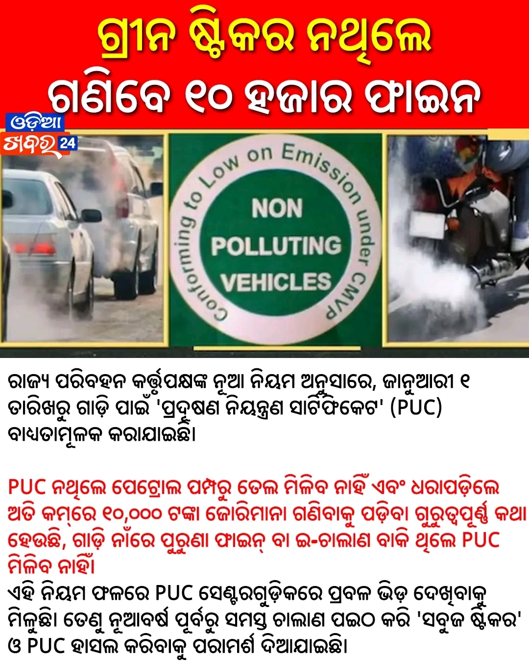 No Green Sticker v/s 10,000/- Fine : Odisha.