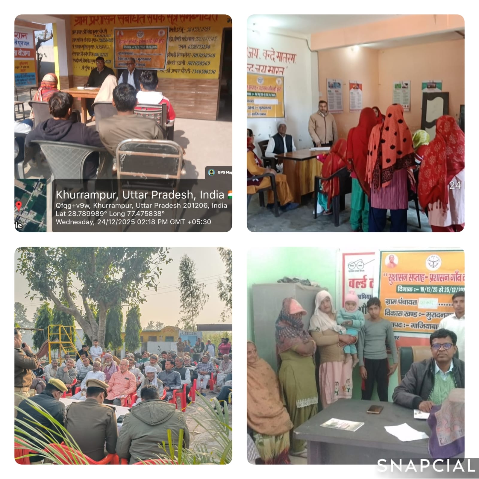 शासन के निर्देशानुसार जनपद गाजियाबाद की ग्राम पंचायतों में दिनांक 24.12.2025 को निर्धारित रोस्टर के अनुसार 21 ग्राम पंचायतों (अब तक कुल 128 ग्राम पंचायतों में) में बैठक, विभिन्न गतिविधियों व कार्यक्रम का आयोजन कर शासन द्वारा संचालित कल्याणकारी योजनाओं की जानकारी देते हुए अब तक कुल प्राप्त 311 जनसमस्याओं के सापेक्ष 281 का त्वरित निस्तारण किया गया।