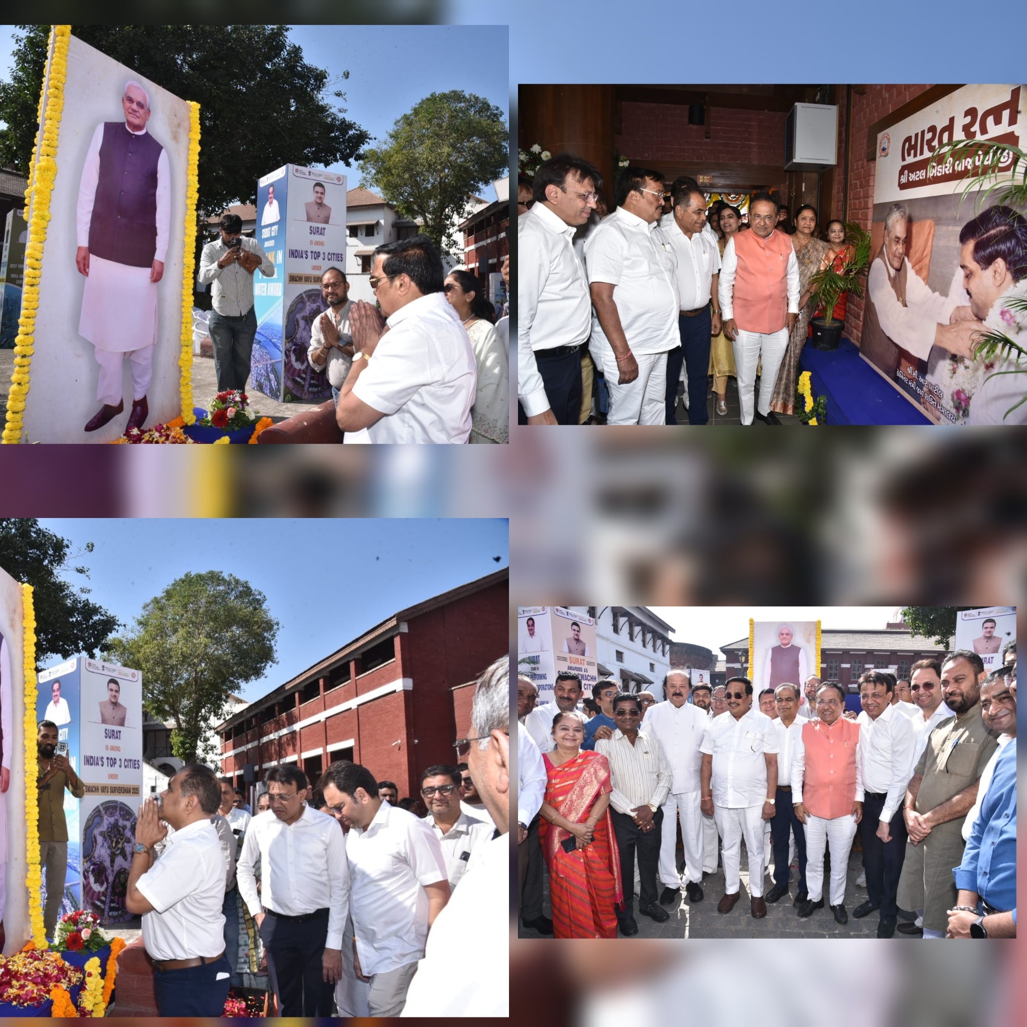 ભારત રત્ન,કવિ,આદર્શ રાજકારણી અને ભૂતપૂર્વ વડાપ્રધાન શ્રઘ્ધેય સ્વ. અટલ બિહારી વાજપેયીજીના માનમાં ભારતમાં દર વર્ષે તેઓની તા.રપ ડિસેમ્બરના રોજ જન્મજંયતિ સુશાસન દિવસ ,ગુડ ગર્વનન્સ ડે તરીકે ઉજવણી કરવામાં આવે છે. સુરત મહાનગરપાલિકા ઘ્વારા સ્વ. અટલ બિહારી વાજપેયીજીની સ્મૃતિ શહેરીજનો માટે કાયમ બની રહે તે અર્થે તેમના જીવન ચરિત્ર પર આધારિત પ્રદર્શન આજ તા.રપ ડિસેમ્બર ર૦રપના રોજ ચોક સ્થિત ઐતિહાસિક કિલ્લાના સંકુલમાં આવેલ આર્ટ ગેલેરી કમ એકિઝબિશન હોલ ખાતે આયોજન કરવામાં આવેલ.