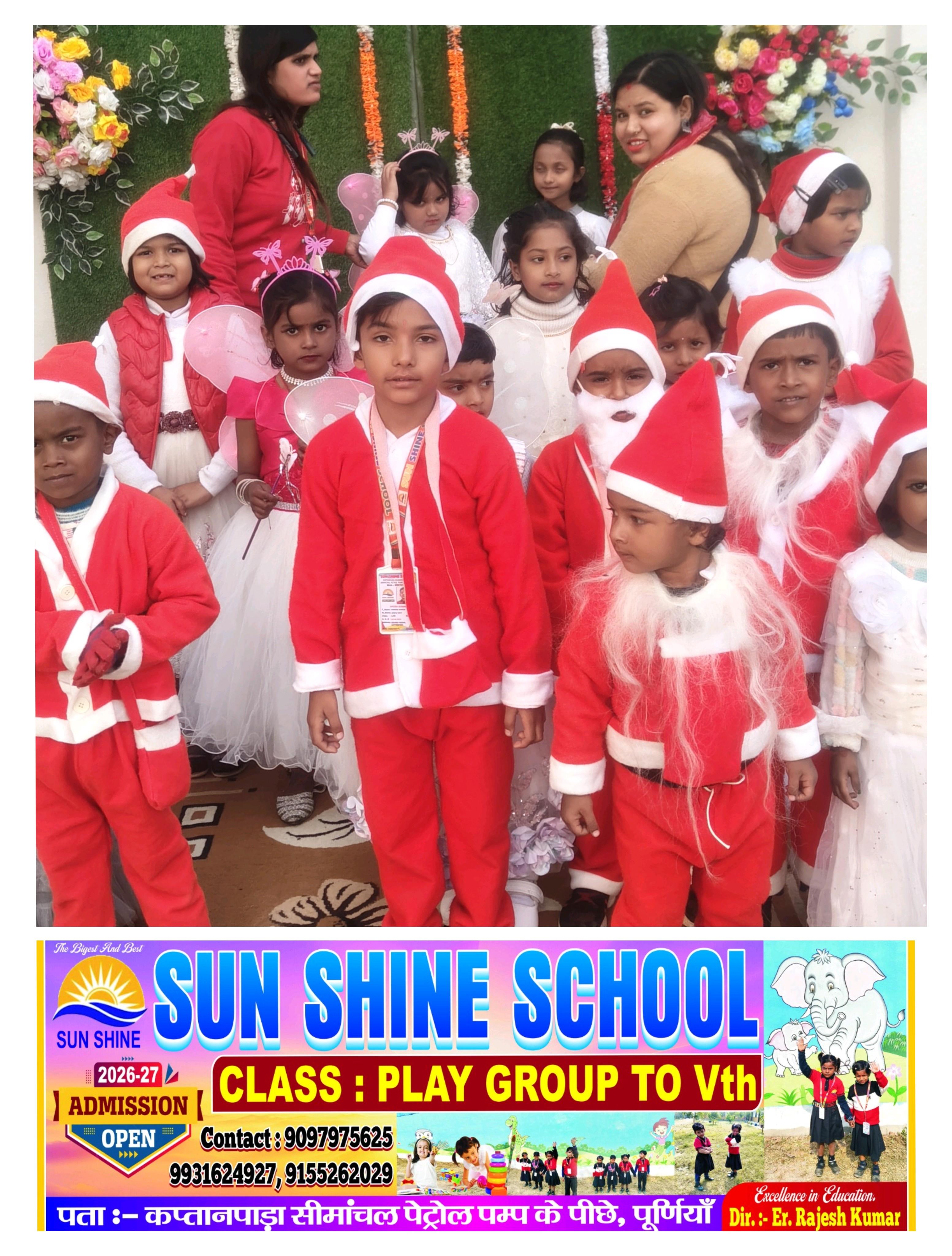 पूर्णिया शहर के सन शाइन स्कूल में क्रिसमस एवं नववर्ष समारोह, नामांकन अभियान की हुई शुरुआत
