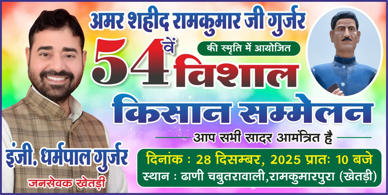 खेतड़ी विधानसभा क्षेत्र में 54 वां विशाल किसान सम्मेलन रविवार को शहीद रामकुमार गुर्जर की पुण्यतिथि पर आयोजित किया जाएगा