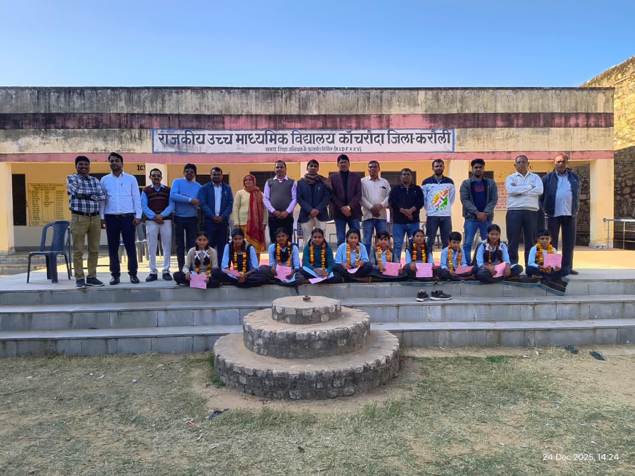 करौली जिले के सपोटरा क्षेत्र में आज दिनांक 24.12.2025 को स्थानीय विद्यालय कांचरौदा में बाल संसद गठन के निर्वाचन की प्रक्रिया सम्पन्न की गई जिसमें 10 छात्र/छात्राओं उम्मीदवारों ने नामांकन किया गया सभी नामांकन वैध पाए गए प्रातः 11:30 से 12:30 तक मतदान प्रक्रिया की गई जिसमें 160 मतदाताओं में से 136 मतदाताओं ने भाग लिया मतदान प्रतिशत 85% रहा मतदान में 5 मत पत्र खारिज पाये गये मतगणना के उपरान्त शीतल मीना को प्रधानमंत्री अंजली योगी उपप्रधानमंत्री सोनम मीना शिक्षा मंत्रि काजल मीना को स्वच्छता मंत्री पूर्ति मीना को सांस्कृतिक मंत्री पद पर विजय घोषित किया गया| चुनाव प्रक्रिया स्थानीय विद्यालय के प्राचार्य श्री राजेश कुमार मीना के निर्देशन में सम्पन्न हुई चुनाव प्रक्रिया में रामलखन जी पुष्पेंद्र जी प्रकाश जी कमलेश जी रामदास मीना उर्मिला सुशीला गौरव सुरेन्द्र महेंद्र राठौर का सहयोग रहा मतगणना प्रभारी श्री रवि कुमार बैरवा श्री निखिल अग्रवाल रोहित महावर आदि उपस्थित रहे
