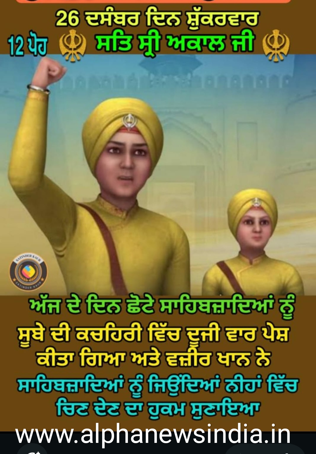 चंडीगढ़ 26 दिसंबर 25 आर विक्रम शर्मा रक्षा शर्मा अनिल शारदा हरीश शर्मा अश्विनी शर्मा भारत में ही नहीं बल्कि दुनिया में दिसंबर मास का अंतिम सप्ताह यह कहिए अंतिम 10 दिन मानवता के लिए शौक के दिन है सिख पंथ के रचयिता गुरु गोविंद सिंह ने मानवता के लिए पंथ के लिए अपने पिता गुरु तेग बहादुर जी और फिर अपने चार साहबजादे बाबा अजीत सिंह बाबा जुझार सिंह बाबा जोरावर सिंह बाबा फतेह सिंह और माता गुजरी की और फिर अंत में अपनी कुर्बानी दी थी।। मुगलों से लोहा लेते हुए दिसंबर की 20 तारीख पौष मास में उन्होंने आनंदपुर साहब का किला अपने परिवार सहित छोड़ दिया था लेकिन सरसा नदी तक पहुंचते पहुंचते परिवार बढ़ गया था माता गुजरी बच्चों को लेकर अलग हो गई और गुरु गोविंद सिंह अलग रास्ते पड़ गए और कई दिनों तक जंगलों में इधर-उधर भटकते रहे। और मुगल उनका पीछा करते रहे। अंत में दो बड़े साहबजादे चमकौर गढ़ी में और दो छोटे साहबजादे सरहिंद की दीवारों में शहीद हुए थे। और माता गुजरी ने भी सरहिंद में ही तड़प तड़प कर प्राण त्याग दिए थे। इन बच्चों को और माता गुजरी कौर को ठंडे बुर्ज में 3 दिन मोतीलाल मेहरा ने गर्म दूध की मुगलों से छुपकर सेवा की थी।। इसके बदले में गुस्सैल काफिर जेहादियों ने उसके 7 साल के बच्चे को धरम पत्नी को और उनकी 80 वर्षीया माता को और अंत में मोतीलाल मेहरा को कोल्हू में पेर दिया गया था। इतिहास गवाह है इस परिवार की सिख पंथ व मानवता के लिए यह कुर्बानी अद्भुत और लसानी है। जैसे गुरु गोविंद सिंह जी का वैसे ही मोतीलाल मेहरा का पूरा बीज नाश यानी वंश नाश मुगलों ने निर्ममता पूर्वक खत्म कर दिया था।। गुरु गोविंद सिंह जी ने तत्कालिनिक परिवेश को संबोधित हुए कहा था कि इस्लामी मुसलमान यानी काफिरों जिहादियों पर कभी भी कभी भी कभी भी विश्वास मत करना यह कौम दुनिया की धरती पर सबसे जालिम निर्दय बे रहम कौम है।। यह वचन गुरु गोविंद सिंह जी ने किए थे।।
