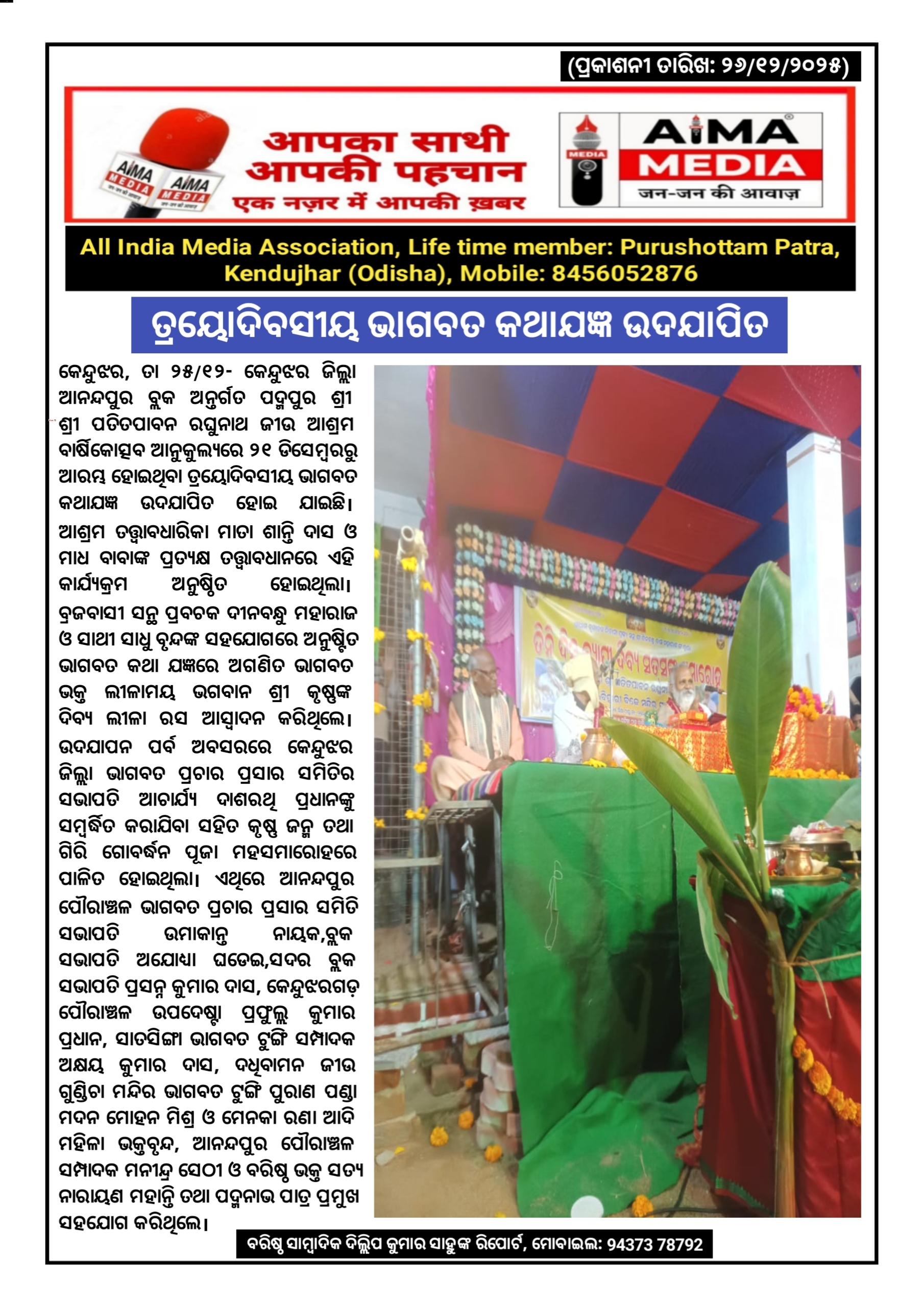 ତ୍ରୟୋଦିବସୀୟ ଭାଗବତ କଥାଯଜ୍ଞ ଉଦଯାପିତ।