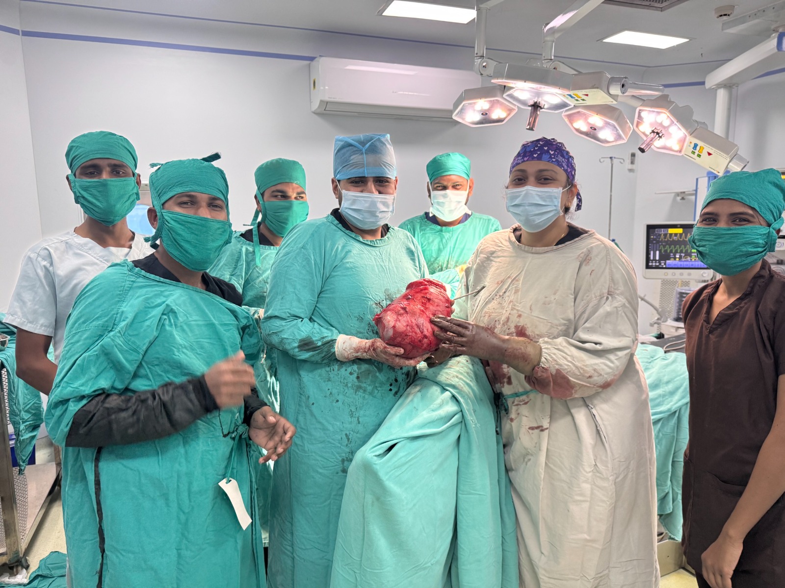 डॉ. किमाया साळी (प्रसूति एवं स्त्री रोग विशेषज्ञ), डॉ. मोनिश गुप्ता (प्रसूति एवं स्त्री रोग विशेषज्ञ), डॉ. हितेषी बैस (एनेस्थेटिस्ट) एवं डॉ. अमृता टाटू (एनेस्थेटिस्ट) की विशेषज्ञ टीम ने अत्यंत सावधानी एवं दक्षता के साथ 3 किलो की गांठ को सफलतापूर्वक निकालते हुए बच्चेदानी को सुरक्षित रखा। सर्जरी के पश्चात मरीज पूर्णतः स्वस्थ है, दर्द से मुक्त है और सामान्य जीवन जी रही है।