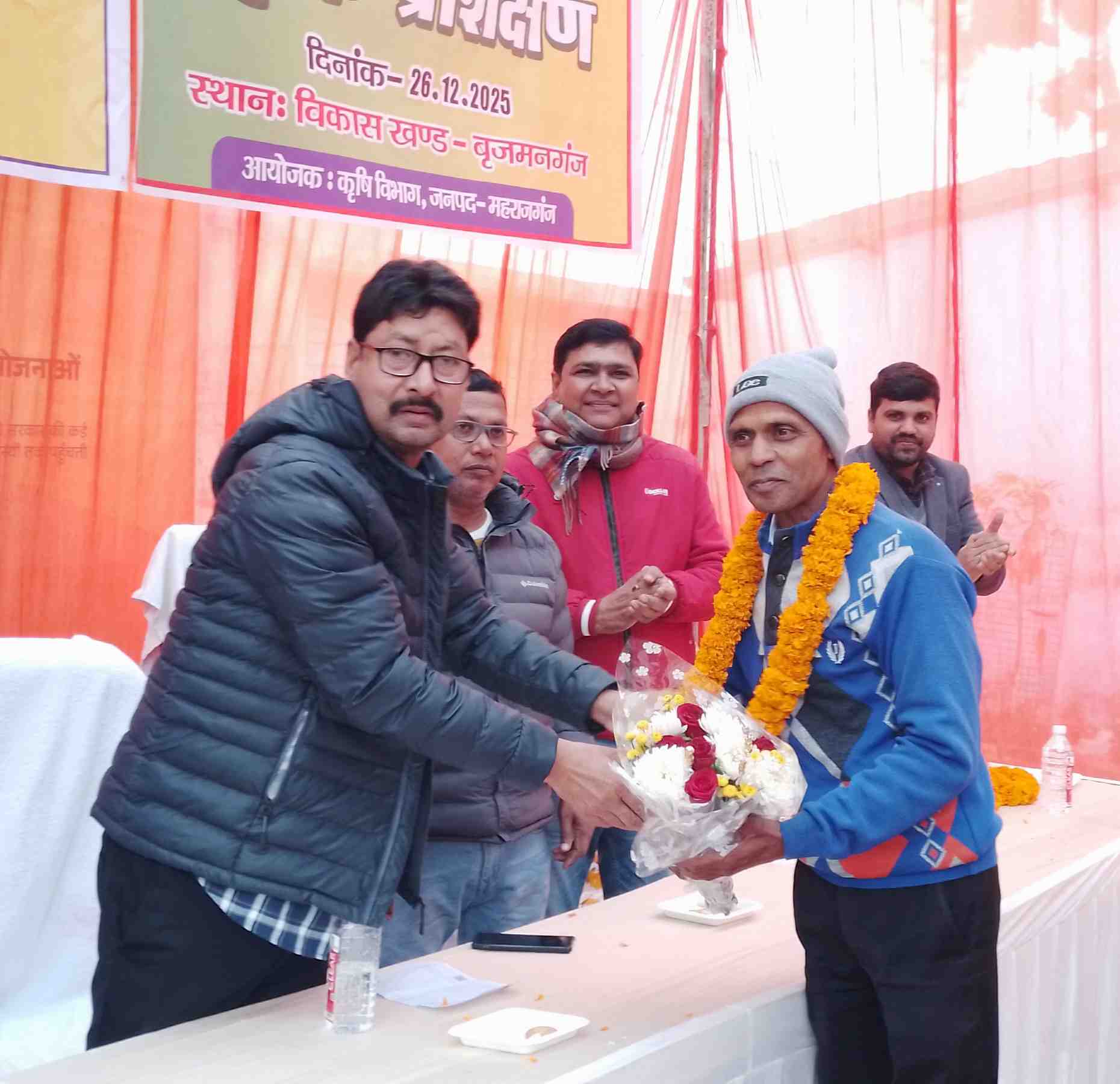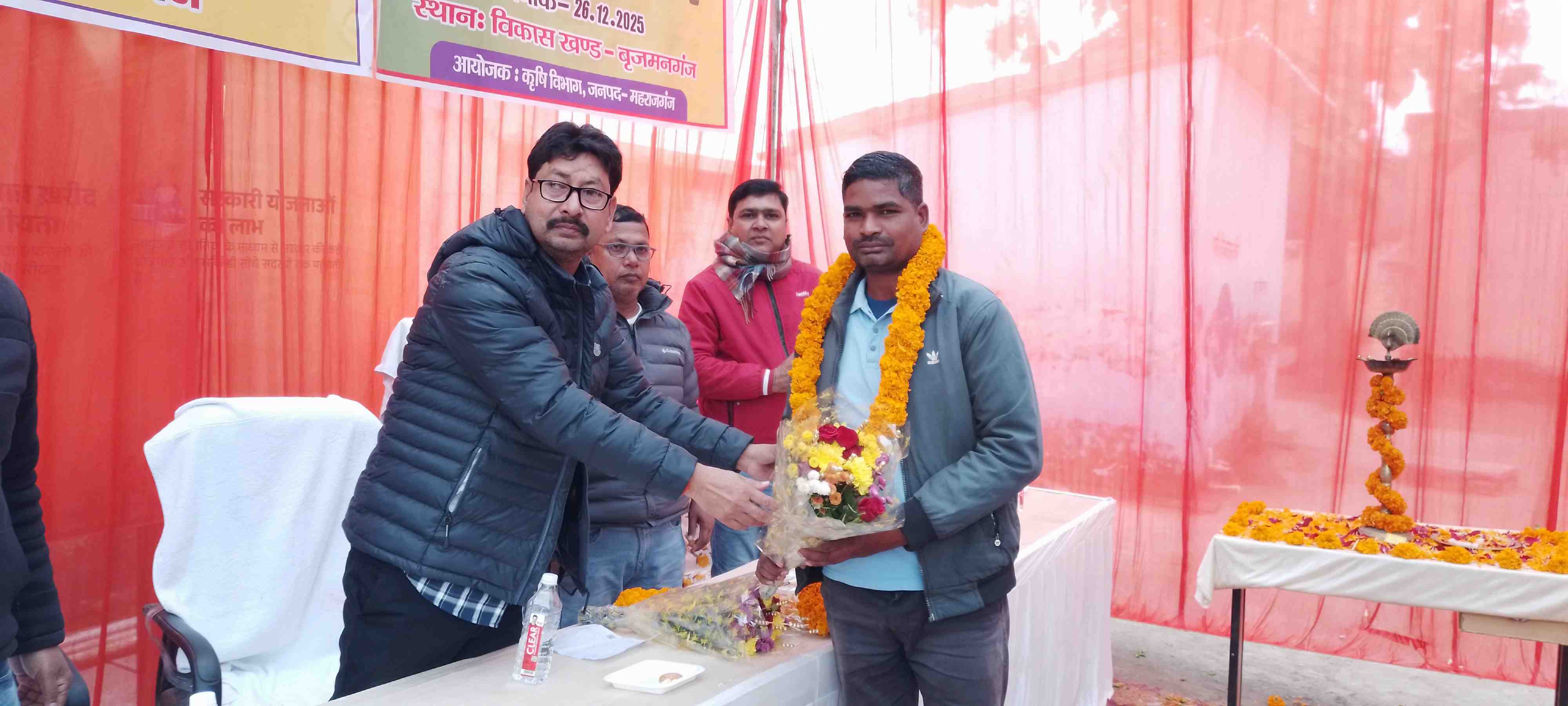 बृजमनगंज, महाराजगंज - जनपद महाराजगंज के बृजमनगंज ब्लॉक पर आयोजित किसान प्रशिक्षण मेले का आयोजन किया गया, जिसमें भारी संख्या में क्षेत्र के किसान, महिलाएं और पुरुष मौजूद रहे। कार्यक्रम का शुभारंभ मुख्य अतिथि नगर अध्यक्ष राकेश जयसवाल द्वारा दीप प्रज्वलित कर किया गया।