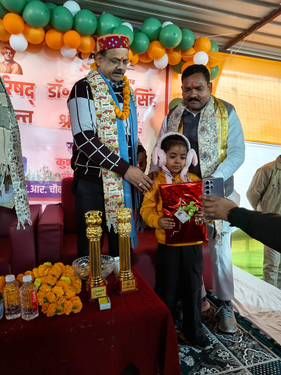 भारत विकास परिषद विवेकानंद शाखा बाढ़ के द्वारा आयोजित विधायक सम्मान कार्यक्रम में किडजी स्कूल बाढ़ की सीनियर के. जी. वर्ग की छात्रा रिशा राज को बाढ़ विधायक डॉ सियाराम सिंह एवं बख्तियारपुर विधायक अरुण शाह जी के द्वारा सम्मानित किया गया l रिशा राज ने जमुई में आयोजित राज्य स्तर की डांस प्रतियोगिता में प्रथम स्थान प्राप्त किया है l अब उन्हें अपने बिहार राज्य का प्रतिनिधित्व कोलकाता में राष्ट्रीय स्तर की प्रतियोगिता में 5 जनवरी को करना होगा l रिशा की उम्र अभी महज 6 साल है l
