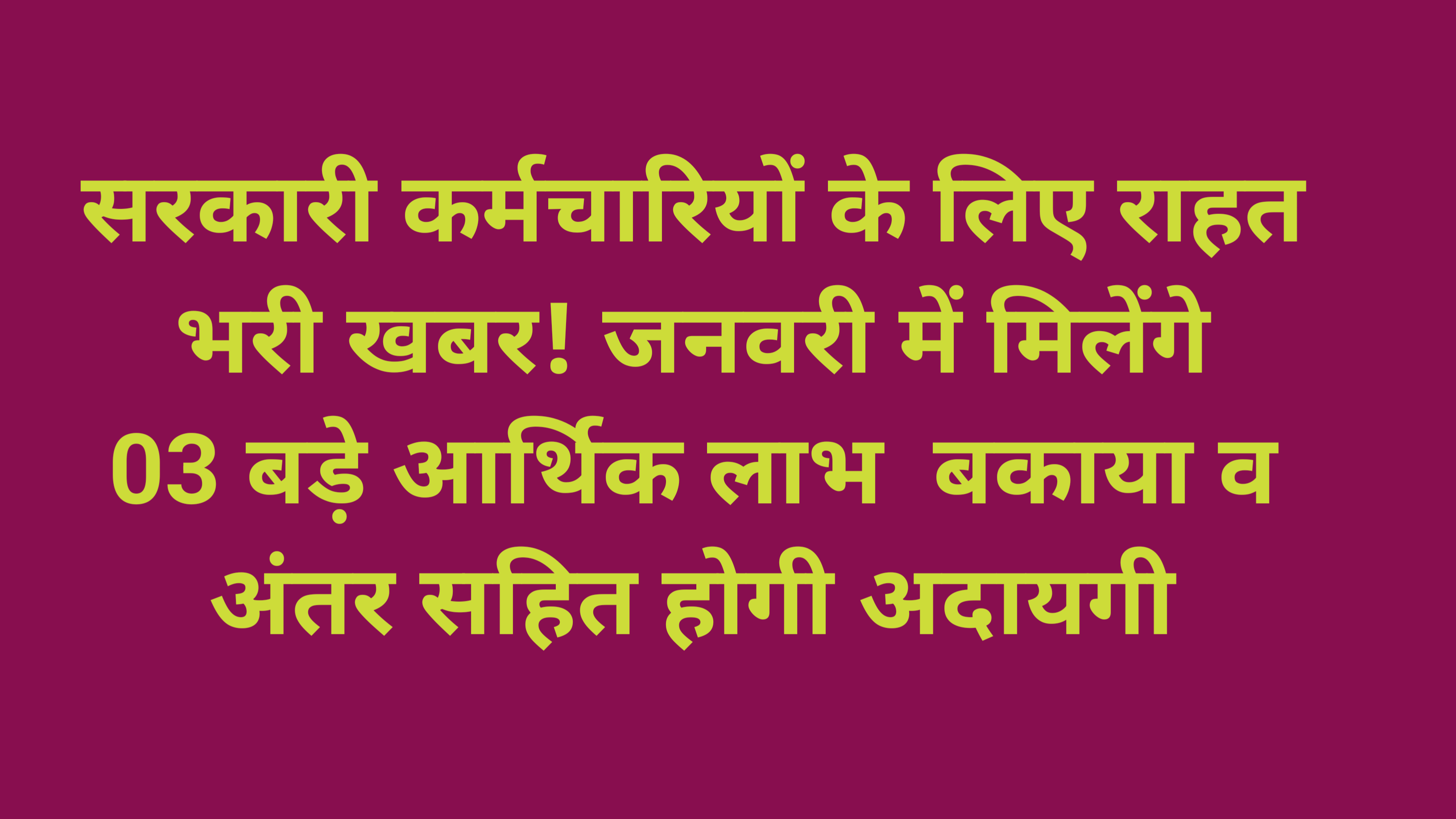 जनवरी में मिलेंगे 03 बड़े आर्थिक लाभ, बकाया व एरियर सहित होगा भुगतान