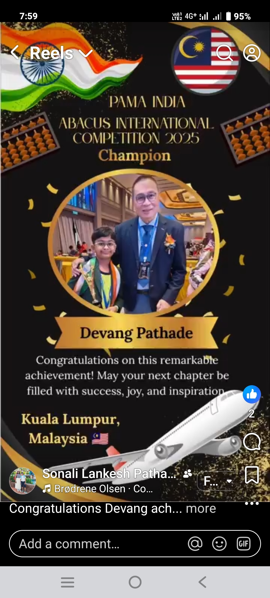 मलेशियातील क्वालालंपूर येथे पार पडलेल्या २३ व्या PAMA Global Abacus & Mental Arithmetic Competition मध्ये