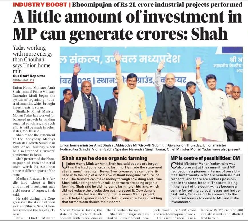 A little amount of investment in MP can generate crores: Union Home minister Amit shah