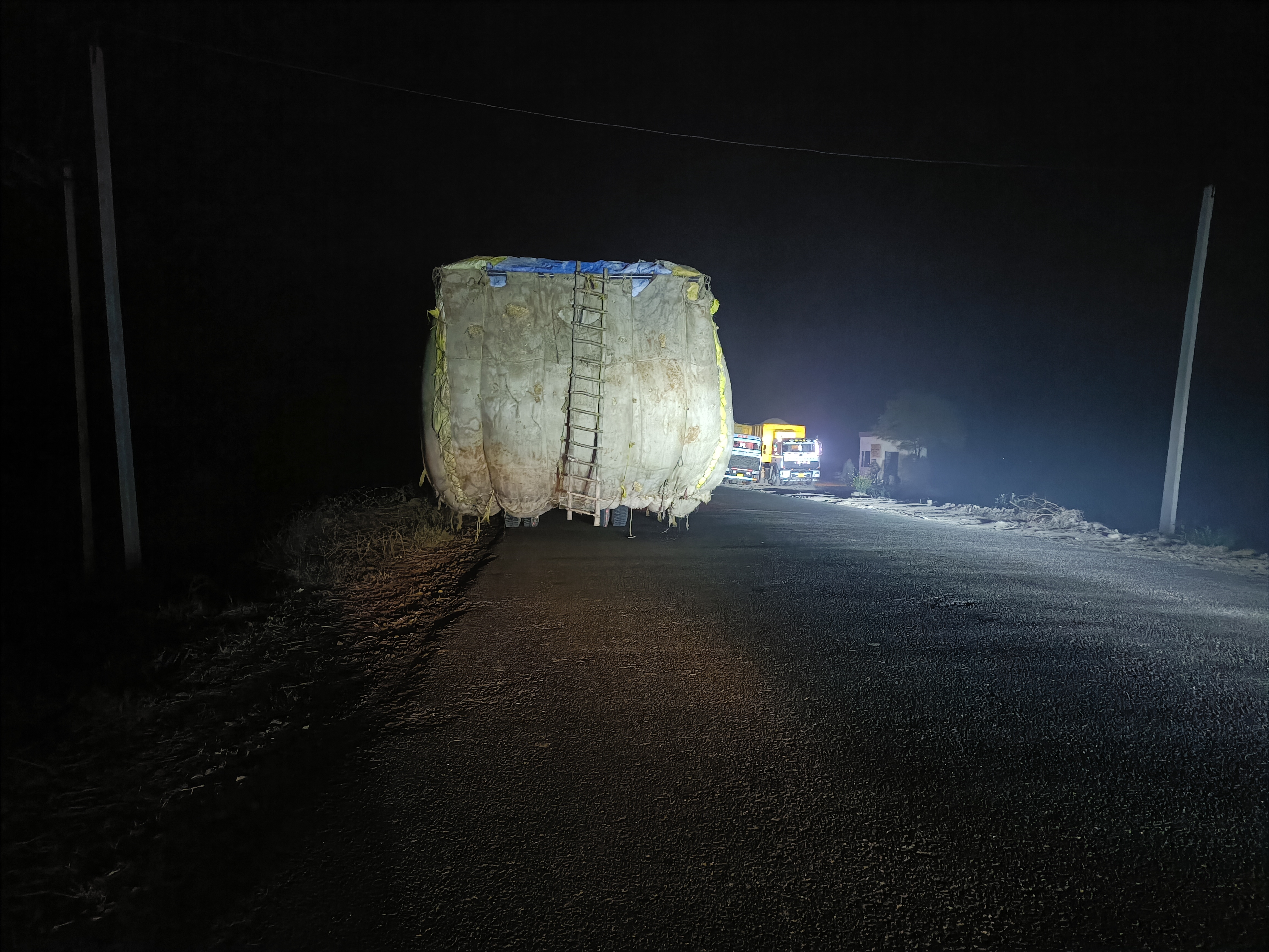 मल्लांवाला–फिरोजपुर रोड पर धर्म कांटे के पास सड़क किनारे खड़े ट्रक और तुड़ी से भरे भुंग दोनों ओर यातायात में बाधा बने हुए हैं।