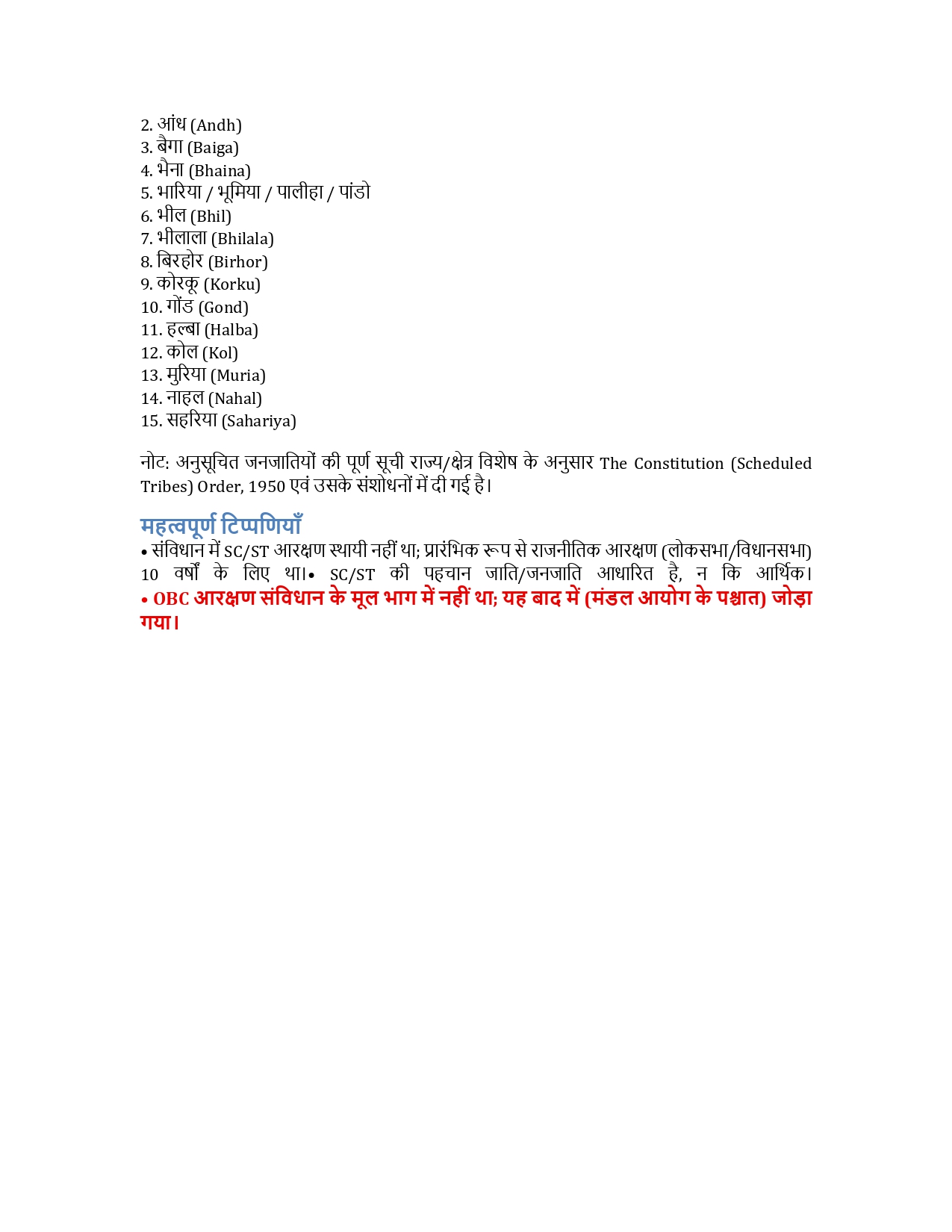 • राजनीतिक आरक्षण (लोकसभा/विधानसभा) के लिए समय-सीमा: