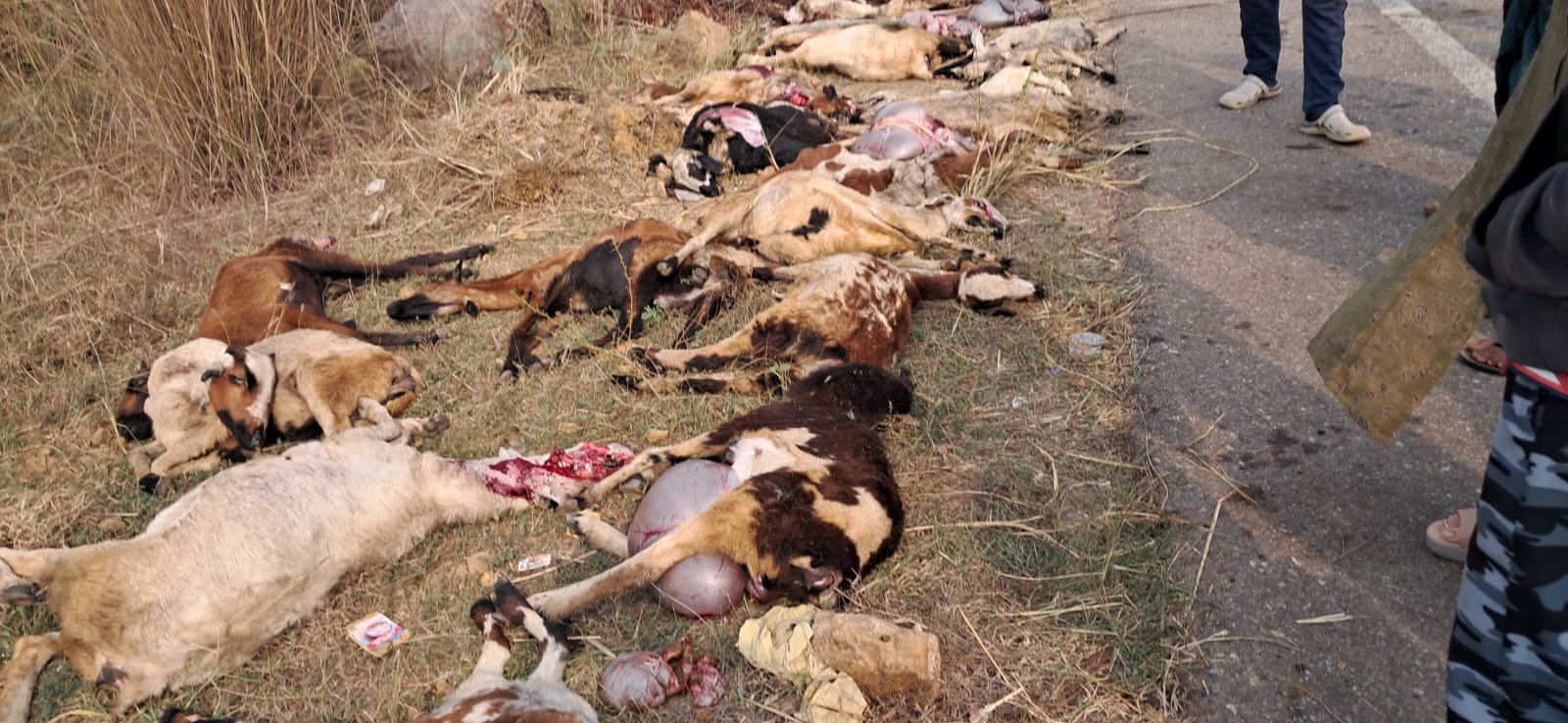 రక్తసిక్తమైన రాయపూర్ హైవే: వేగంగా దూసుకొచ్చిన వాహనం.. 35 మూగజీవాలు మృతి!