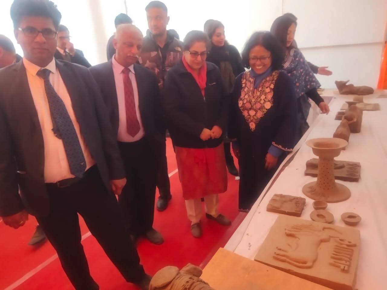हरियाणा,हांसी के उपमंडल नारनौंद के गांव राखीगढी मे चल रहे तीन दिवसीय राखीगढ़ी महोत्सव के दूसरे दिन का कार्यक्रम ऐतिहासिक, सांस्कृतिक और शैक्षणिक गतिविधियों से भरपूर रहा। इस अवसर पर पंजाब एवं हरियाणा उच्च न्यायालय की न्यायाधीश अलका सरीन ने बतौर मुख्य अतिथि शिरकत की, जबकि कार्यक्रम की अध्यक्षता जिला एवं सत्र न्यायाधीश अलका मलिक ने की। कार्यक्रम में अतिरिक्त जिला एवं सत्र न्यायाधीश डी.एन. भारद्वाज, अतिरिक्त जिला एवं सत्र न्यायाधीश डॉ. गगनदीप मित्तल, अतिरिक्त जिला एवं सत्र न्यायाधीश मंगलेश चौबे, एसडीएम विकास यादव, बरवाला उपमंडल के एसडीएम वेद प्रकाश बेनीवाल सहित अनेक प्रशासनिक व न्यायिक अधिकारी उपस्थित रहे। मुख्य अतिथि न्यायाधीश अलका सरीन ने महोत्सव स्थल पर विभिन्न विभागों एवं स्वयं सहायता समूहों द्वारा लगाए गए प्रदर्शनी स्टालों का अवलोकन किया। इस दौरान उन्होंने स्वयं सहायता समूहों की महिलाओं से संवाद करते हुए उनके द्वारा घरों में तैयार किए गए उत्पादों की जानकारी ली और उनकी मेहनत व आत्मनिर्भरता की सराहना की। उन्होंने कहा कि ऐसे मंच ग्रामीण महिलाओं की प्रतिभा को पहचान दिलाने और उन्हें आर्थिक रूप से सशक्त बनाने में अहम भूमिका निभाते हैं। इसके पश्चात मुख्य अतिथि ने कार्यक्रम स्थल पर बनाए गए कृत्रिम पुरातात्विक साइट पर प्रतीकात्मक उत्खनन गतिविधि में भाग लिया और प्राचीन सभ्यता की वैज्ञानिक खोज प्रक्रिया को नजदीक से देखा। इस दौरान उन्होंने अपने हाथों से मिट्टी का बर्तन भी बनाया। मुख्य मंच पर विभिन्न विद्यालयों की टीमों द्वारा प्रस्तुत की जा रही सांस्कृतिक प्रस्तुतियों को भी न्यायाधीश अलका सरीन ने ध्यानपूर्वक देखा। उन्होंने बच्चों की प्रतिभा की प्रशंसा करते हुए उनका उत्साहवर्धन किया और बच्चों के साथ फोटो खिंचवाए। इस दौरान बच्चों में खासा उत्साह देखने को मिला और उन्होंने मुख्य अतिथि के साथ सेल्फी भी ली। महोत्सव के दौरान न्यायाधीश अलका सरीन ने राखीगढ़ी स्थित हड़प्पा कालीन पुरातात्विक स्थलों टीला नंबर एक व तीन का भी दौरा किया। उन्होंने उत्खनन के दौरान प्राप्त कच्ची ईंटों की इमारतों, पक्की ईंटों का कुआं तथा अन्य ऐतिहासिक अवशेषों का अवलोकन किया। इस अवसर पर पुरातत्व एवं संग्रहालय विभाग के अधिकारियों ने मुख्य अतिथि को जानकारी देते हुए बताया कि राखीगढ़ी में उत्खनन के दौरान अब तक हड़प्पा काल से पूर्व, हड़प्पा काल तथा हड़प्पा काल के बाद की सभ्यताओं के महत्वपूर्ण प्रमाण प्राप्त हुए हैं। उन्होंने यह भी बताया कि यहां खेल स्टेडियम अथवा थिएटर जैसी संरचनाओं के संकेत मिल रहे हैं, हालांकि उत्खनन का कार्य पूर्ण होने के बाद ही स्पष्ट निष्कर्ष सामने आ