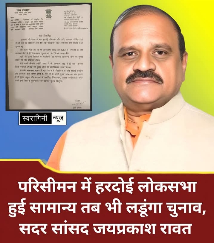हरदोई सांसद ने चुनाव लड़ने और जीतने की भी बात कही, सदर सांसद जयप्रकाश रावत के इस बयान को पूर्व सांसद नरेश अग्रवाल के उस बयान से जोड़कर देखा जा रहा है जिसमें पूर्व सांसद ने हरदोई लोकसभा के सामान्य होने पर BJP टिकट पर चुनाव लड़ने का दावा किया है, सदर BJP सांसद जयप्रकाश रावत ने एक पत्र जारी कर चुनाव लड़ने की बात कही है,