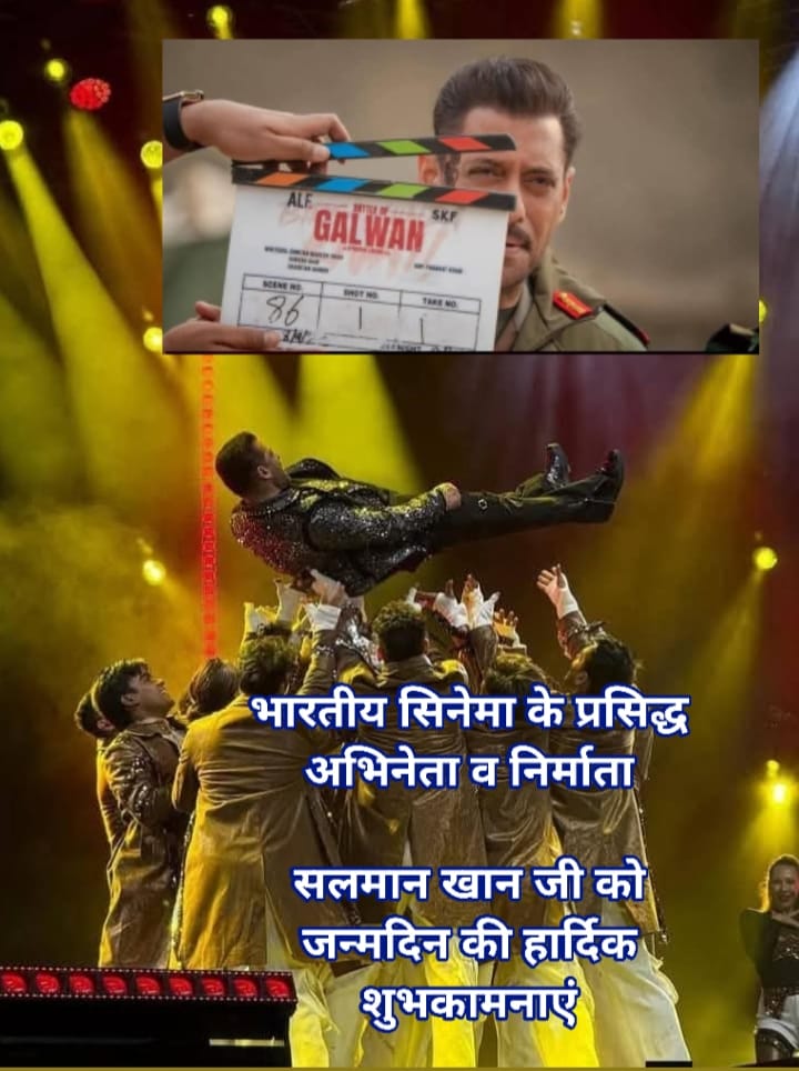 भारतीय सिनेमा के प्रसिद्ध अभिनेता व निर्माता सलमान खान जी को जन्मदिन की हार्दिक शुभकामनाएं।उर्दू व फारसी भाषा के सर्वकालिक प्रसिद्ध शायर