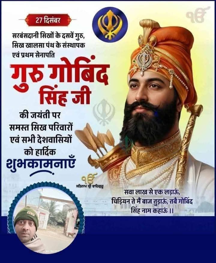 सिख धर्म के दसवें गुरु श्री गुरु गोबिंद सिंह जी की जयंती पर शत्-शत् नमन।