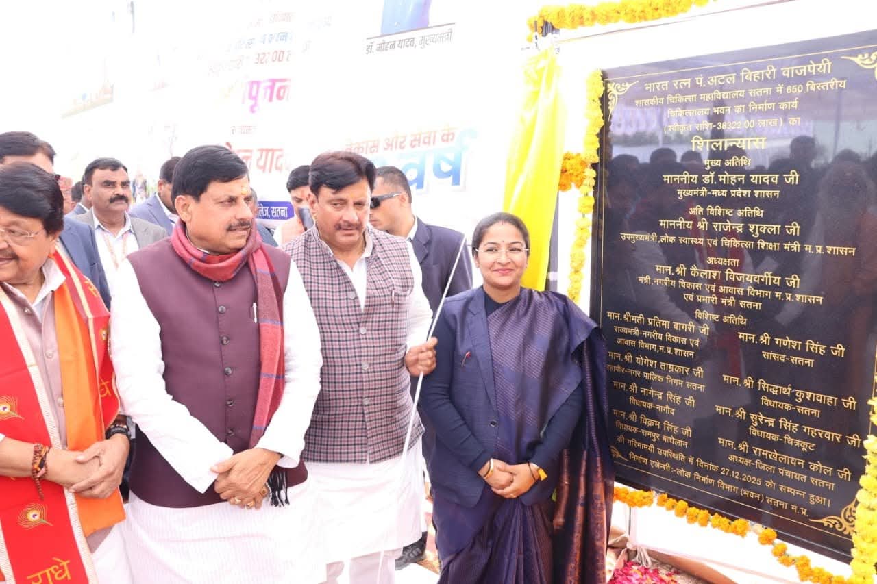 मुख्यमंत्री डॉ. मोहन यादव ने आज शासकीय चिकित्सा महाविद्यालय, सतना में 650 बिस्तरीय नवीन चिकित्सालय भवन के निर्माण कार्य का भूमिपूजन किया।