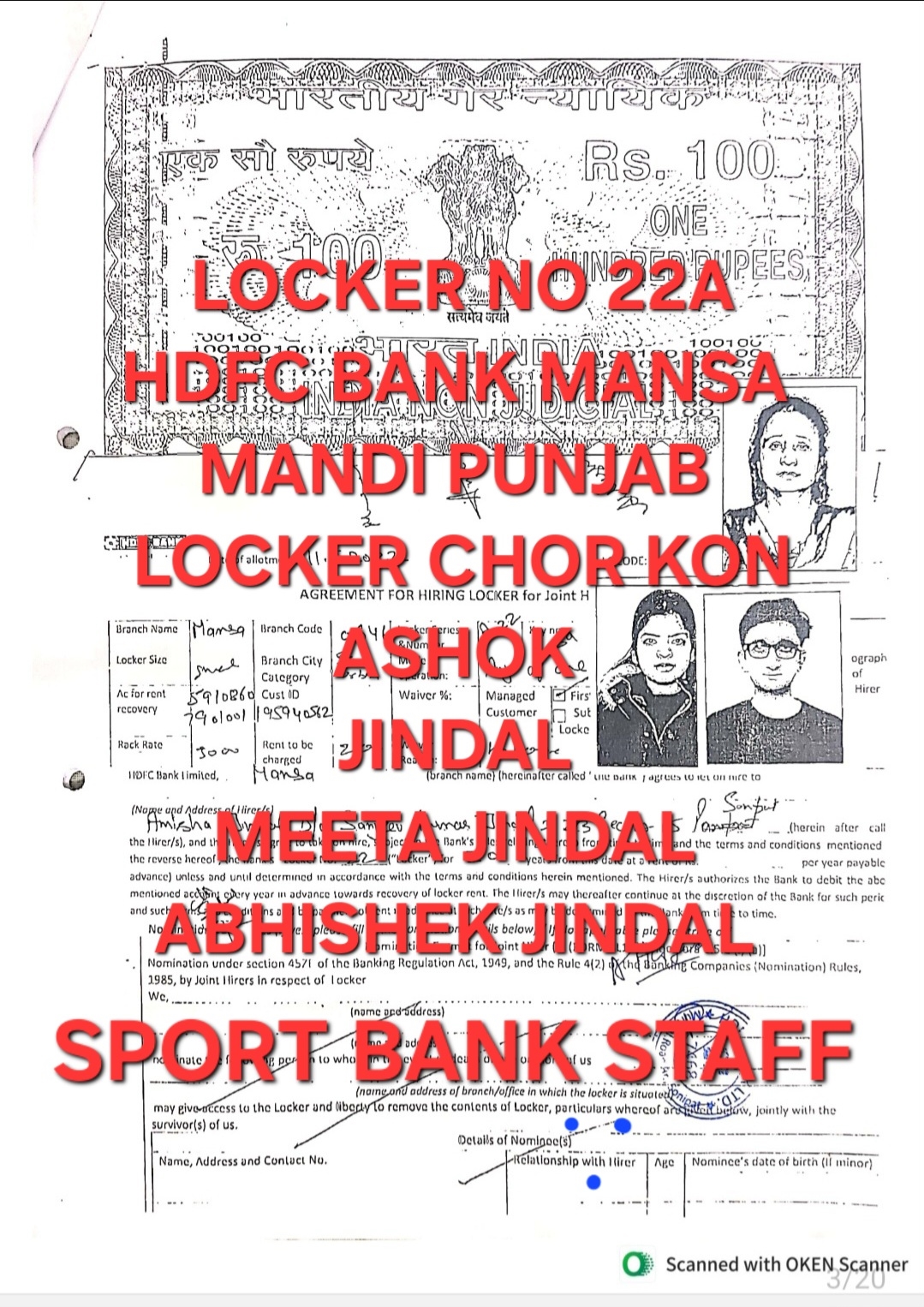 Shatin Goyal Additional Session Judge Amritsar sport stamp paper chori fake Aadhaar Card Misuse Locker Fraud chori & fake signature HDFC BANK & PNB BANK & PUNJAB & SIND BANK MANSA MANDI PUNJAB