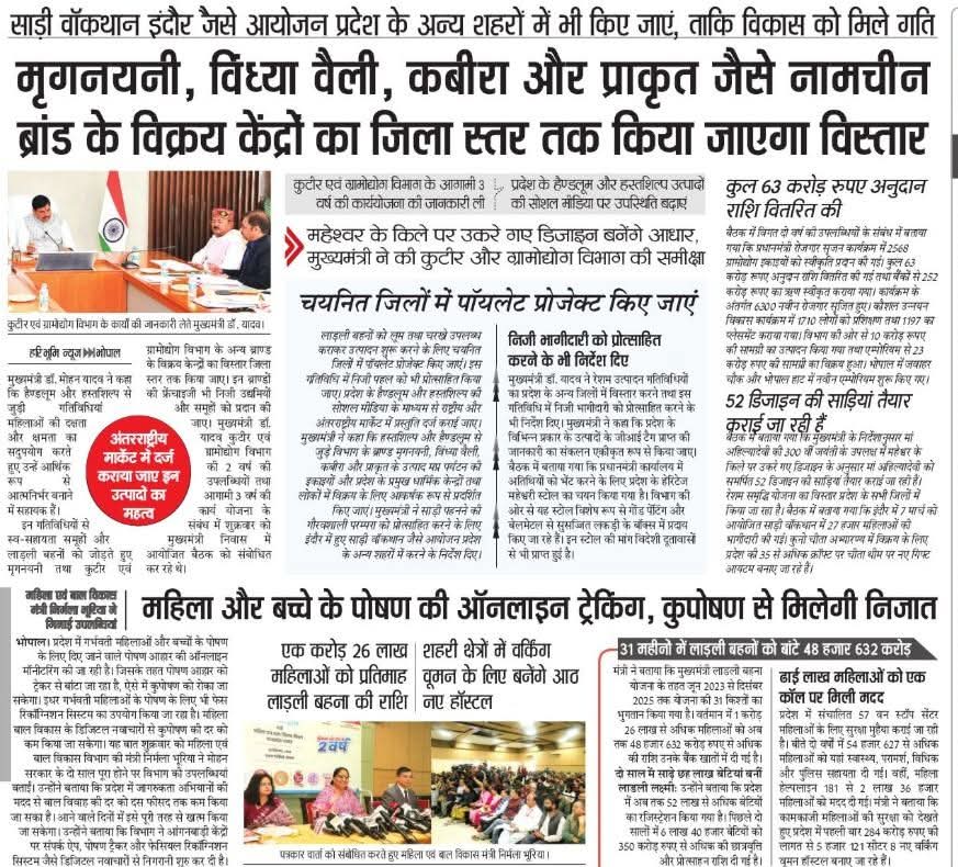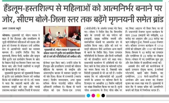 मृगनयनी, विंध्य वैली, कबीरा और प्राकृत जैसे ब्रांड के विक्रय केन्द्रों का जिला स्तर तक किया जाए विस्तार: मुख्यमंत्री डॉ मोहन यादव