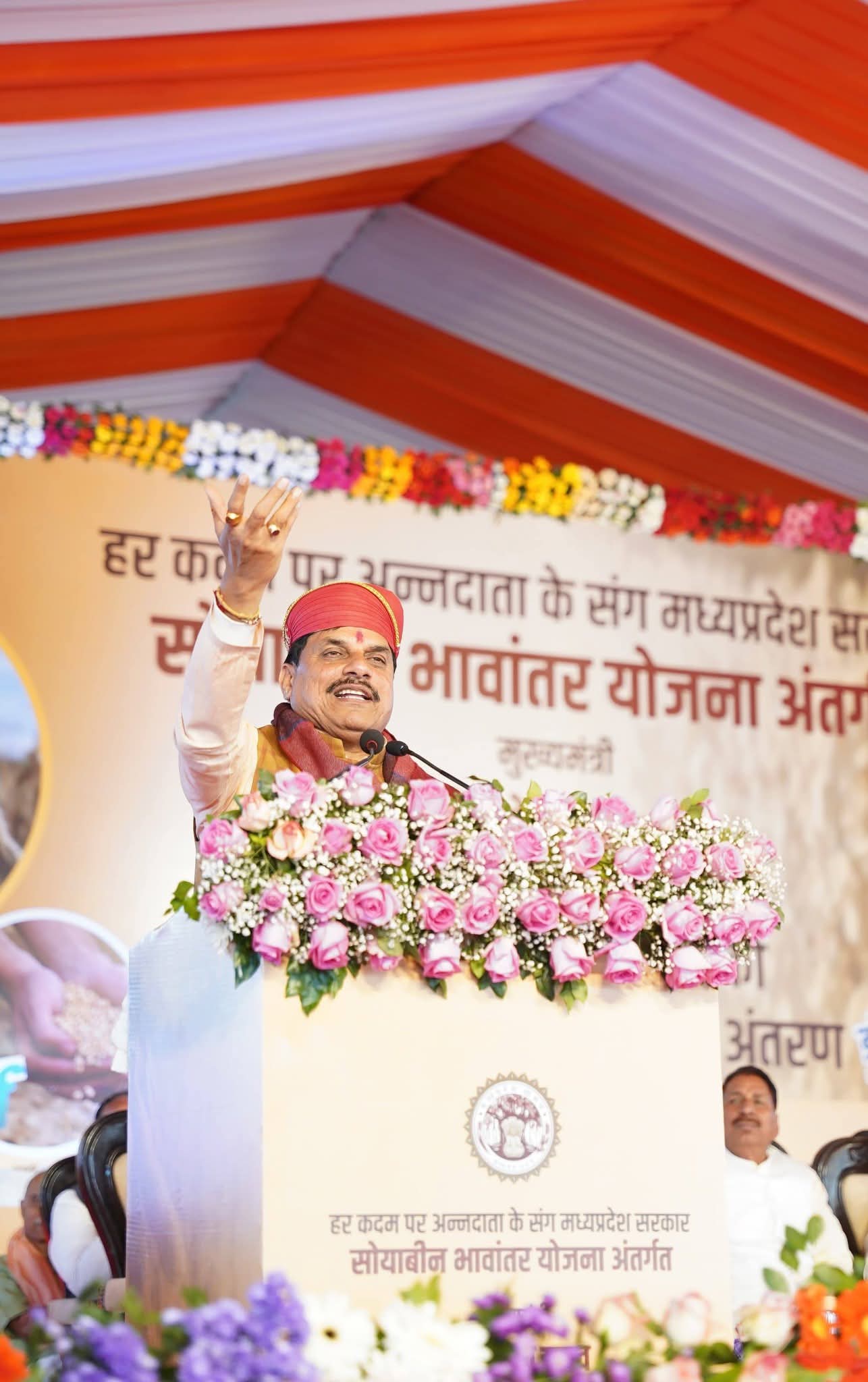 मुख्यमंत्री डॉ मोहन यादव ने आज जावरा, रतलाम में सोयाबीन के किसानों के खातों में 'भावान्तर योजना' की राशि का अंतरण किया। जिले के लिए ₹145.55 करोड़ के 33 विकास कार्यों का लोकार्पण एवं भूमिपूजन किया।
