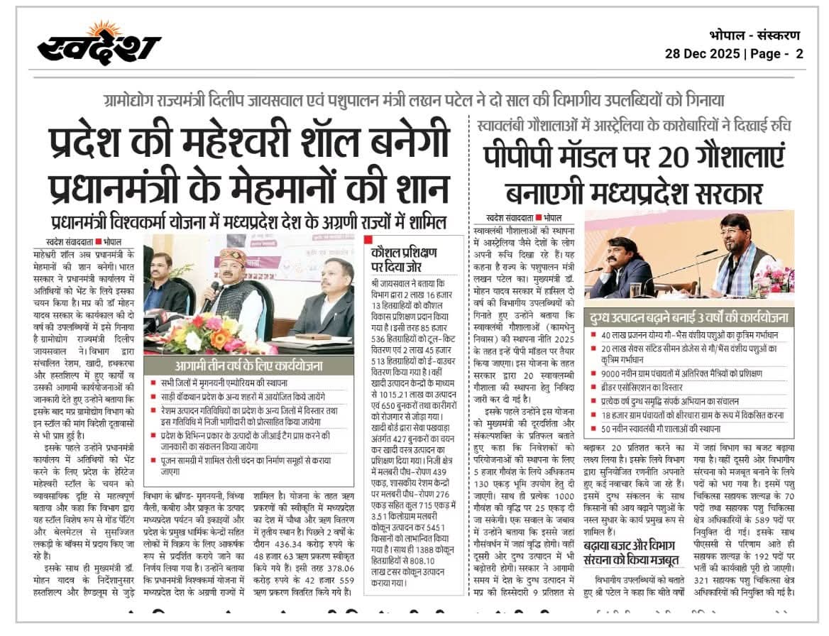 कुटीर एवं ग्रामोद्योग मंत्री दिलीप जायसवाल एवं पशुपालन एवं डेयरी मंत्री लखन पटेल ने दो वर्ष की विभागीय उपलब्धियों को साक्षा किया