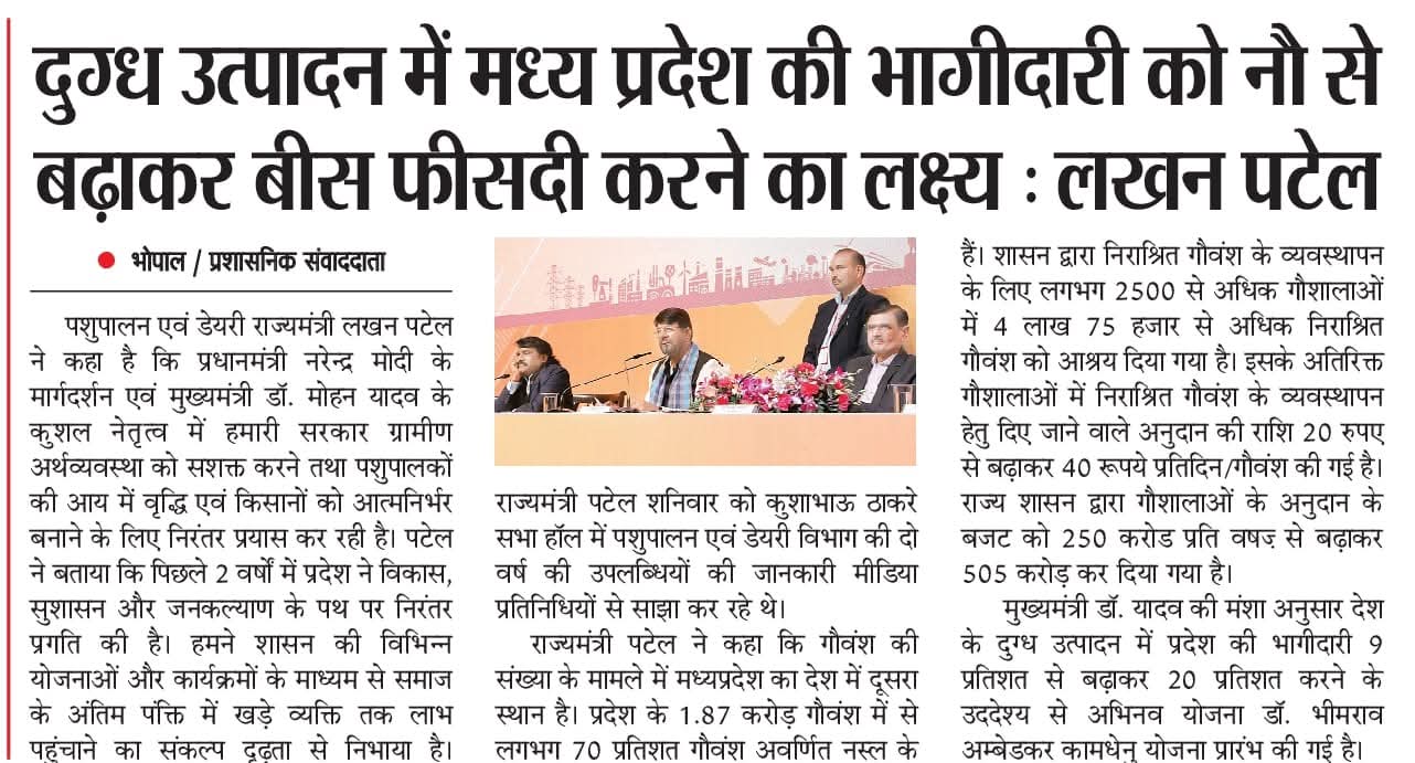 कुटीर एवं ग्रामोद्योग मंत्री श्री दिलीप जायसवाल एवं पशुपालन एवं डेयरी मंत्री श्री लखन पटेल ने दो वर्ष की विभागीय उपलब्धियों को साझा किया