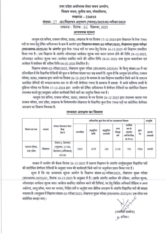 खबरहलचल न्यूज उत्तर प्रदेश लेखपाल चयन आवेदन का संशोधित लिस्ट जारी
