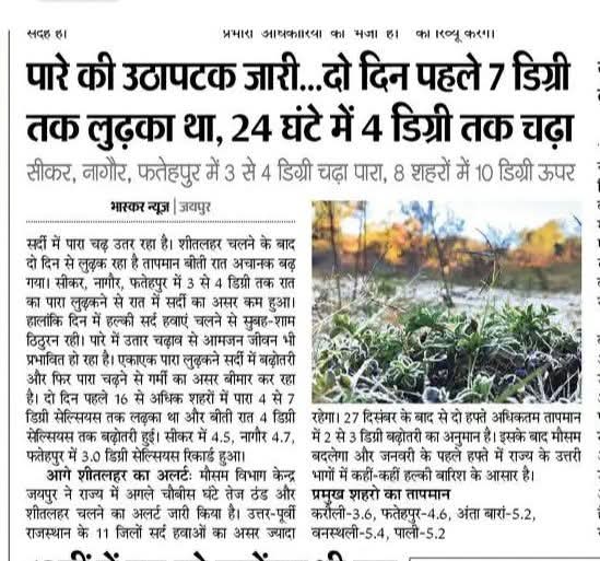 पारे की उठापटक जारी... दो दिन पहले 7 डिग्री तक लुढ़का था, 24 घंटे में 4 डिग्री तक चढ़ा