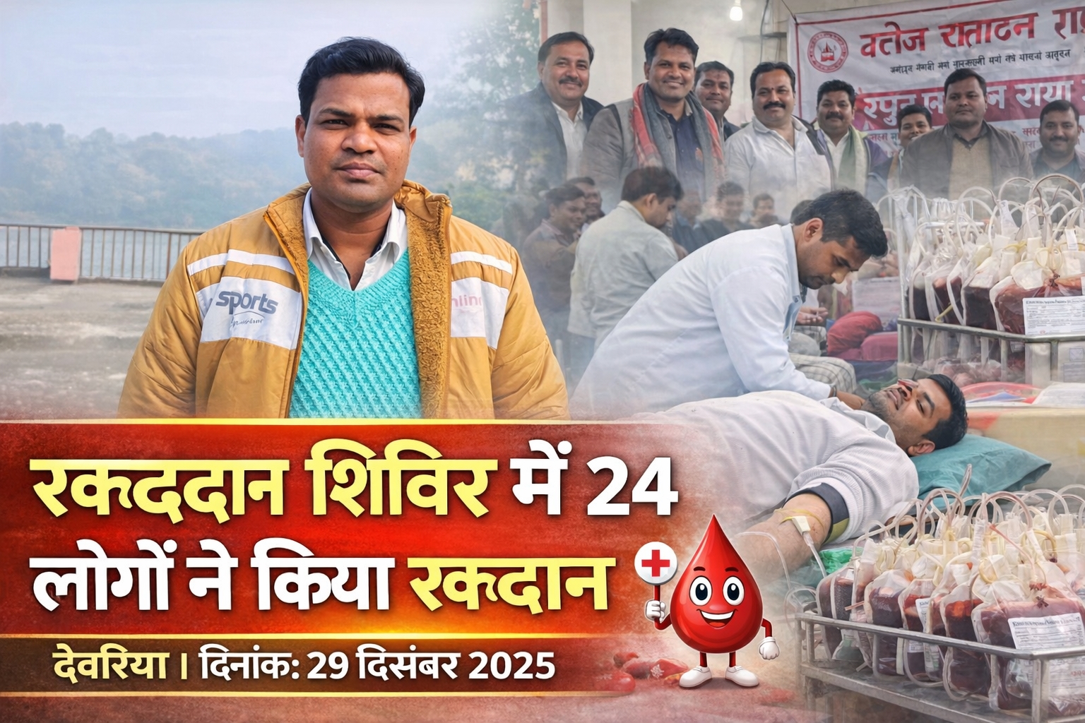 रक्तदान शिविर में 24 लोगों ने किया रक्तदान देवरिया | दिनांक: 29 दिसंबर 2025