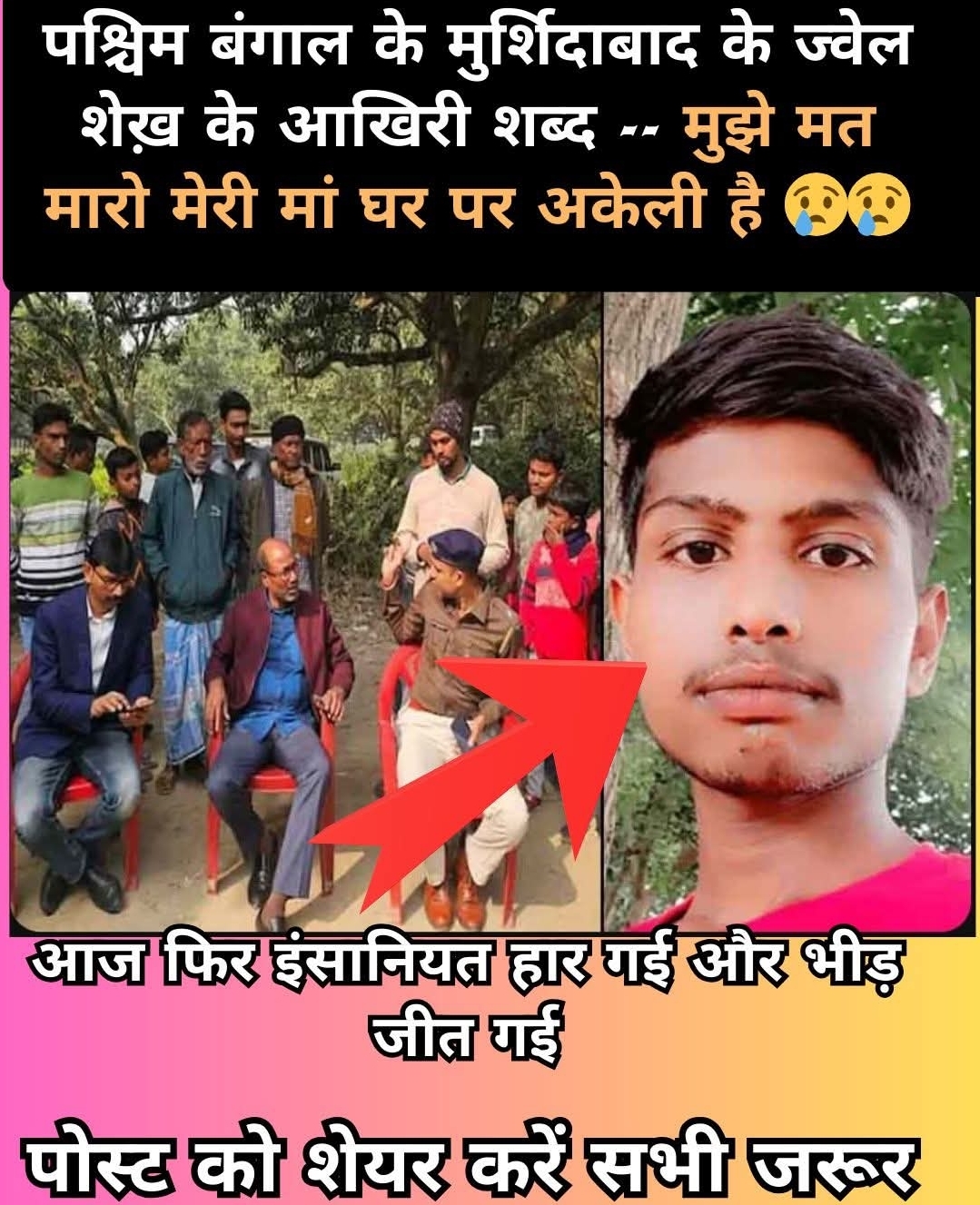 ज्वेल अकेला नहीं था। उसके साथ उसके दो साथी — अकिर शेख और पलाश शेख भी थे। तीनों रोज़ की तरह काम से लौट रहे थे। रास्ते में बीड़ी मांगने को लेकर मामूली तकरार हुई, फिर पहचान पत्र दिखाने की बात आई और यहीं से शक, नफ़रत और अफ़वाह का ज़हर फैल गया। देखते ही देखते भीड़ जमा हो गई। ज्वेल हाथ जोड़ता रहा, अपनी माँ का हवाला देता रहा, लेकिन लाठियाँ चलती रहीं। ज्वेल की जान चली गई, जबकि अकिर और पलाश गंभीर रूप से घायल होकर अस्पताल में ज़िंदगी और मौत से जूझते रहे। वे ज़िंदा हैं, लेकिन उस रात का डर और अपमान शायद उन्हें कभी चैन से जीने नहीं देगा।